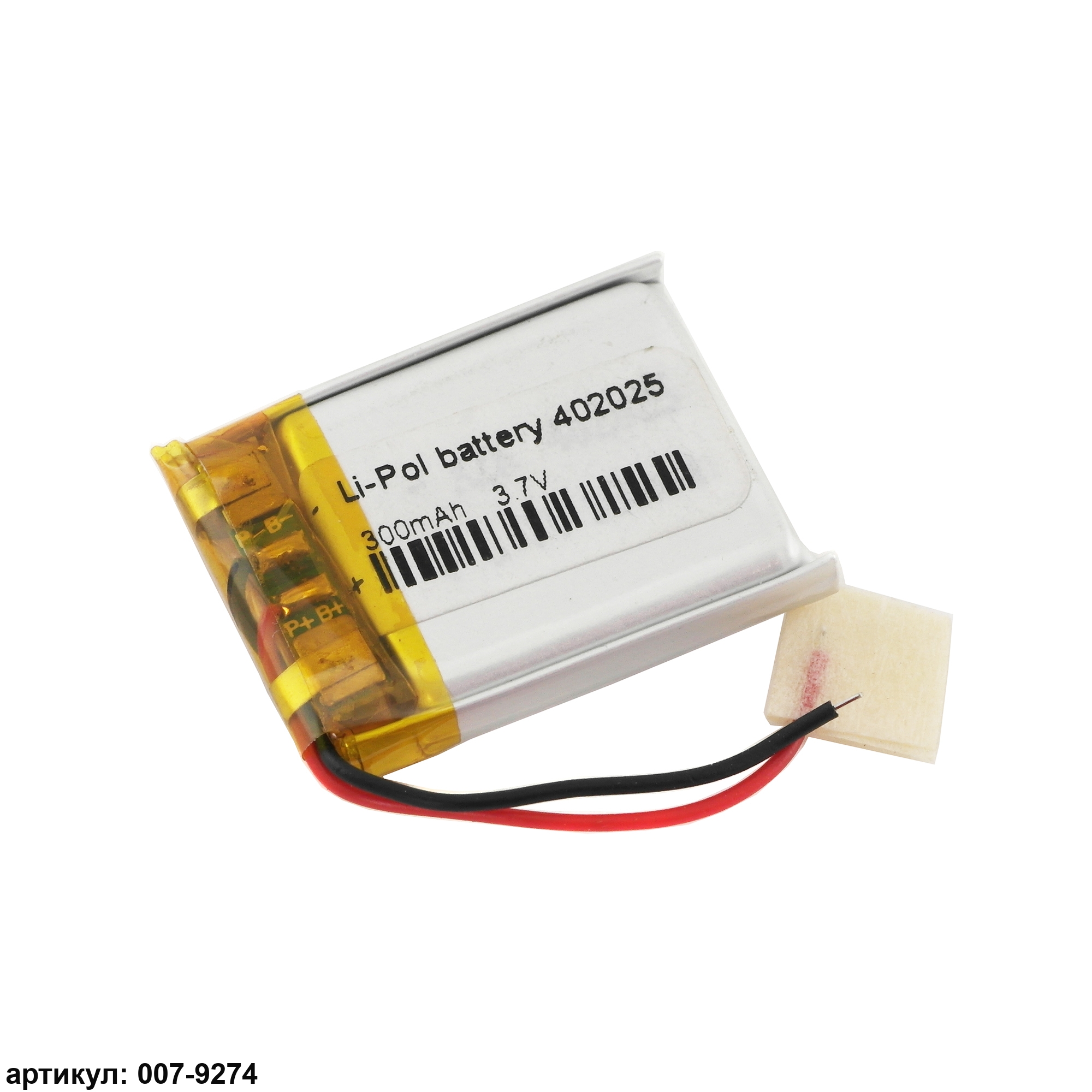 Аккумулятор 3.7v 300mAh 25x20x4 мм (2 pin)