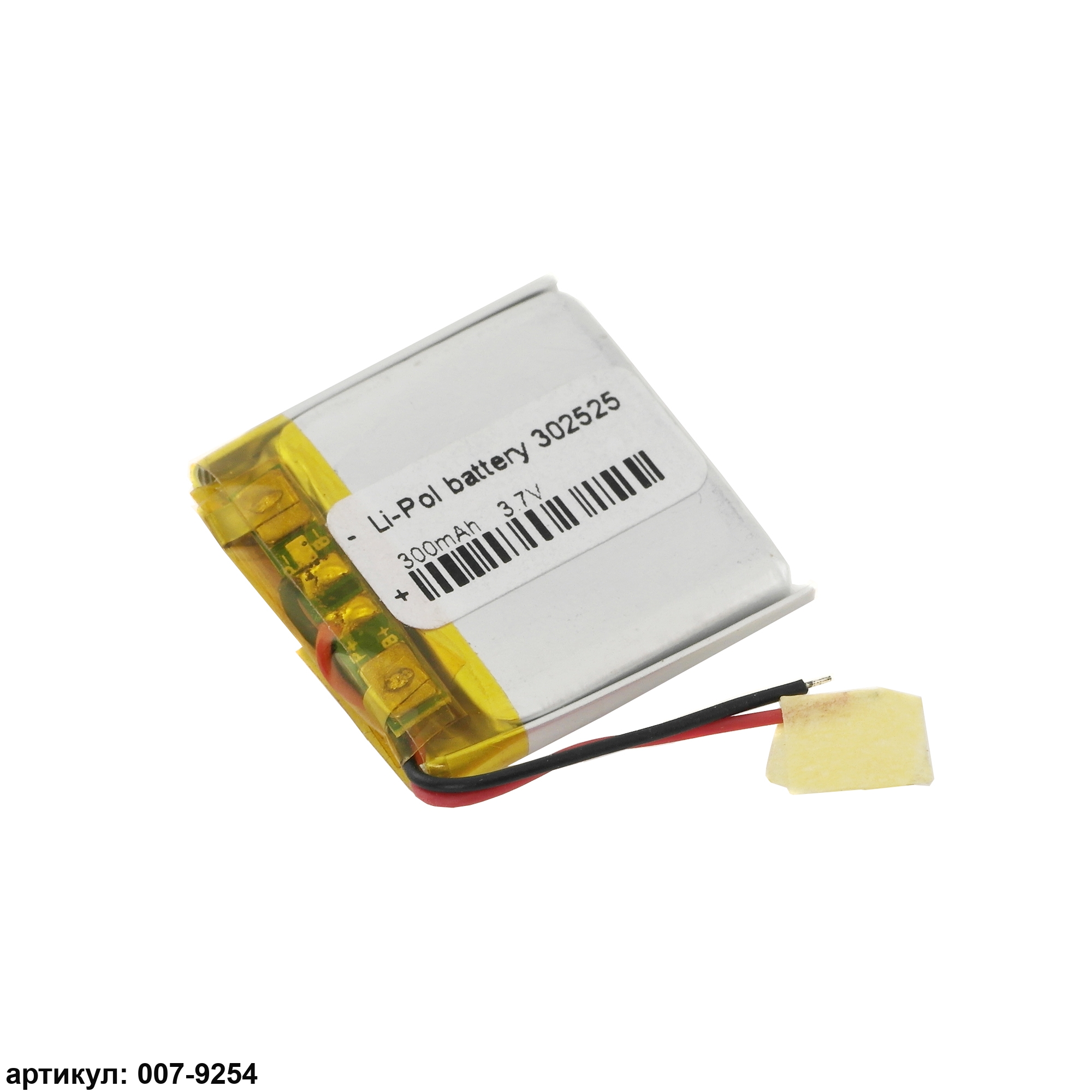 Аккумулятор 3.7v 300mAh 25x25x4 мм (2 pin)