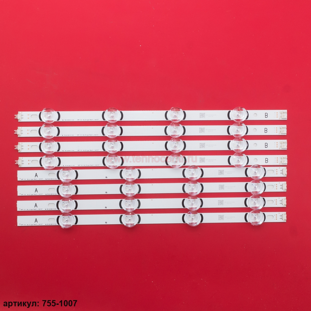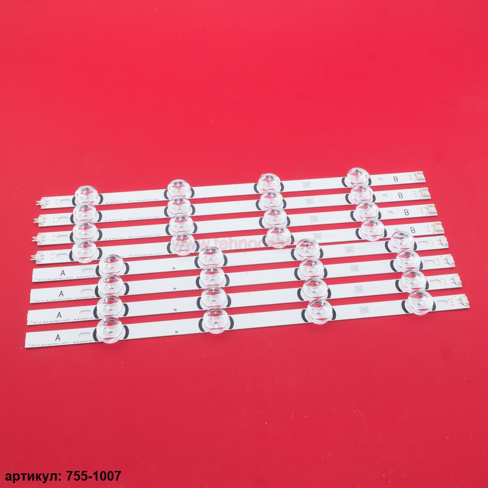 Комплект планок (8 шт) 4A+4B светодиодной подсветки для телевизора LG 39' / (8 led 6V 807mm)