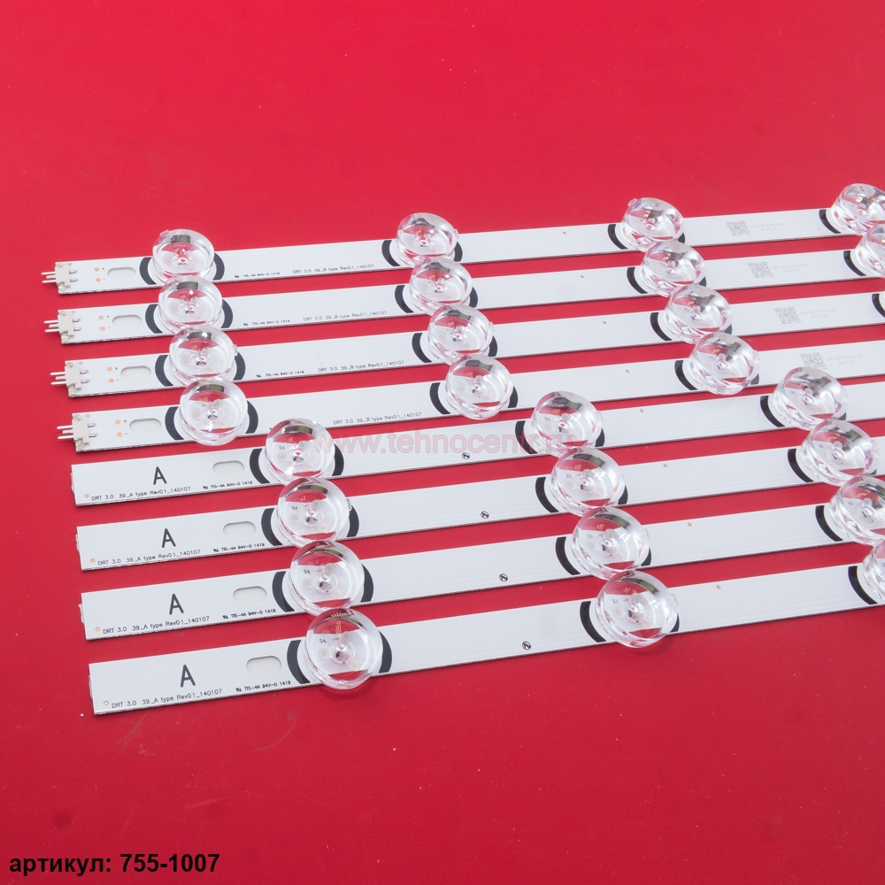 Комплект планок (8 шт) 4A+4B светодиодной подсветки для телевизора LG 39' / (8 led 6V 807mm)Комплект включает в себя:- 4 планки A type LG Innotek DRT 3.0 39'- 4 планки B type LG Innotek DRT 3.0 39'Совместимые p/n: 390HVJ01Подходит для моделей телевизора: LG 39LB561V, 39LB650V, 39LB5700, 39LB5800...