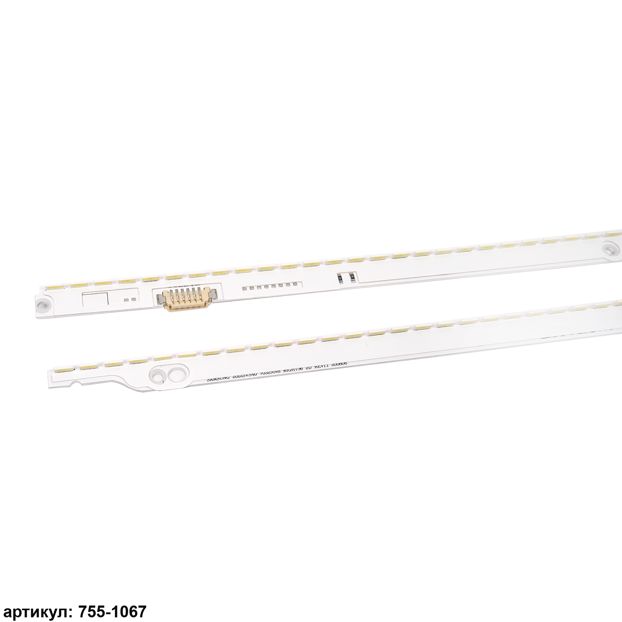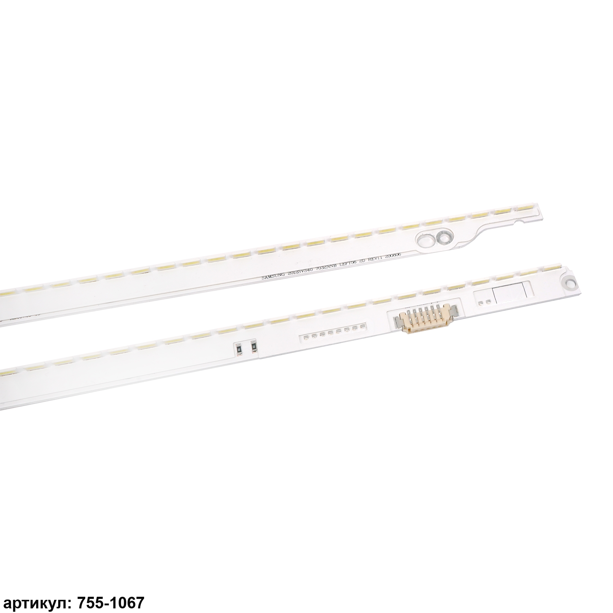 Комплект планок светодиодной подсветки для телевизора Samsung 40' / (56 led 3V 500mm) Комплект включает в себя: - 1 планку Samsung 2012SVS40 7032NNB LEFT56 2D REV1.1- 1 планку Samsung 2012SVS40 7032NNB RIGHT56 2D REV1.1Совместимые p/n: BN96-21712A, 3D-7032LED-MCPCB-L, V2GE-400SMA-R3, 3D-7032LED-MCPCB-R, V2GE-400SMB-R3Подходит для моделей телевизора: Samsung UE40ES6100W, UE40ES6307U, UE40ES6557U, UE40ES6800S
