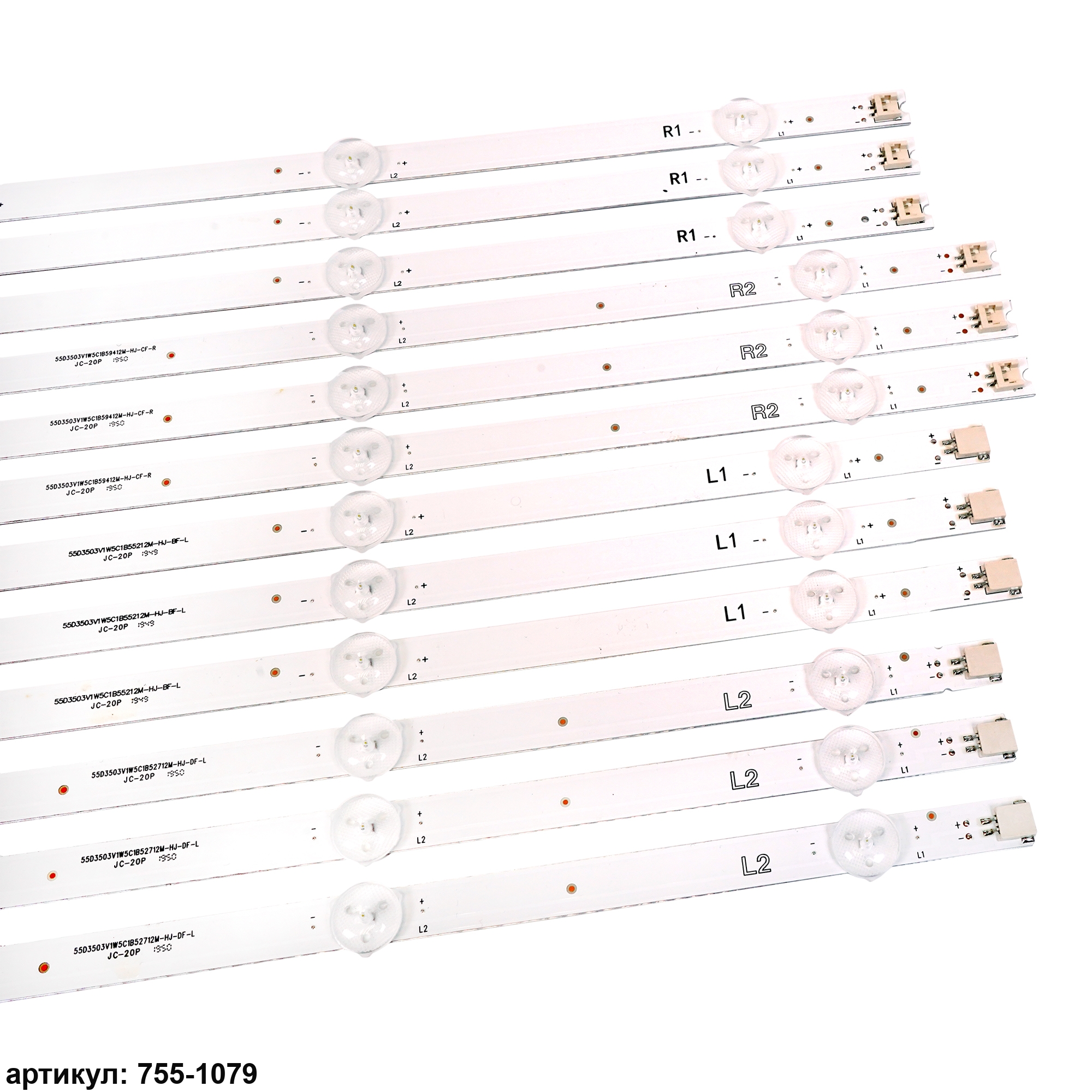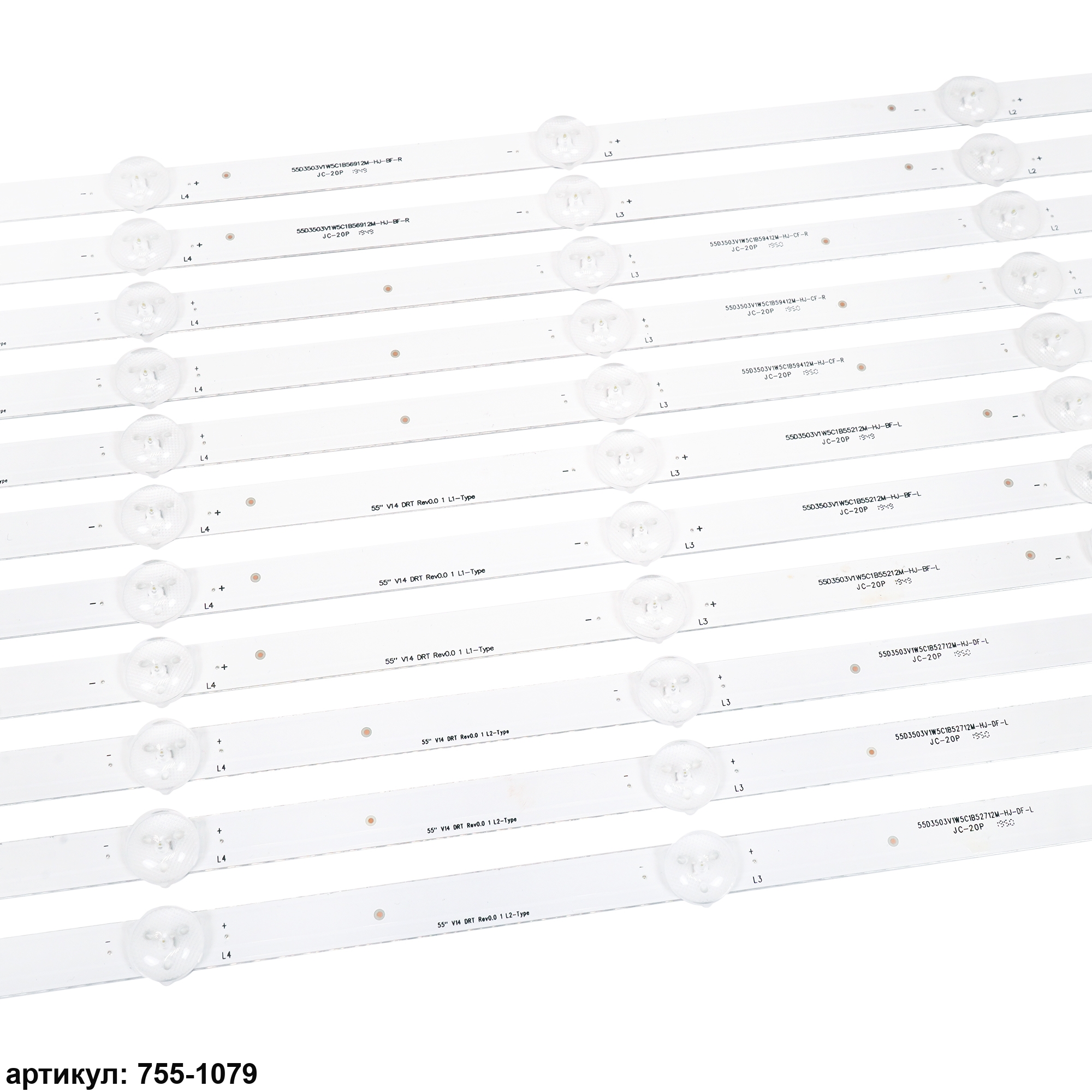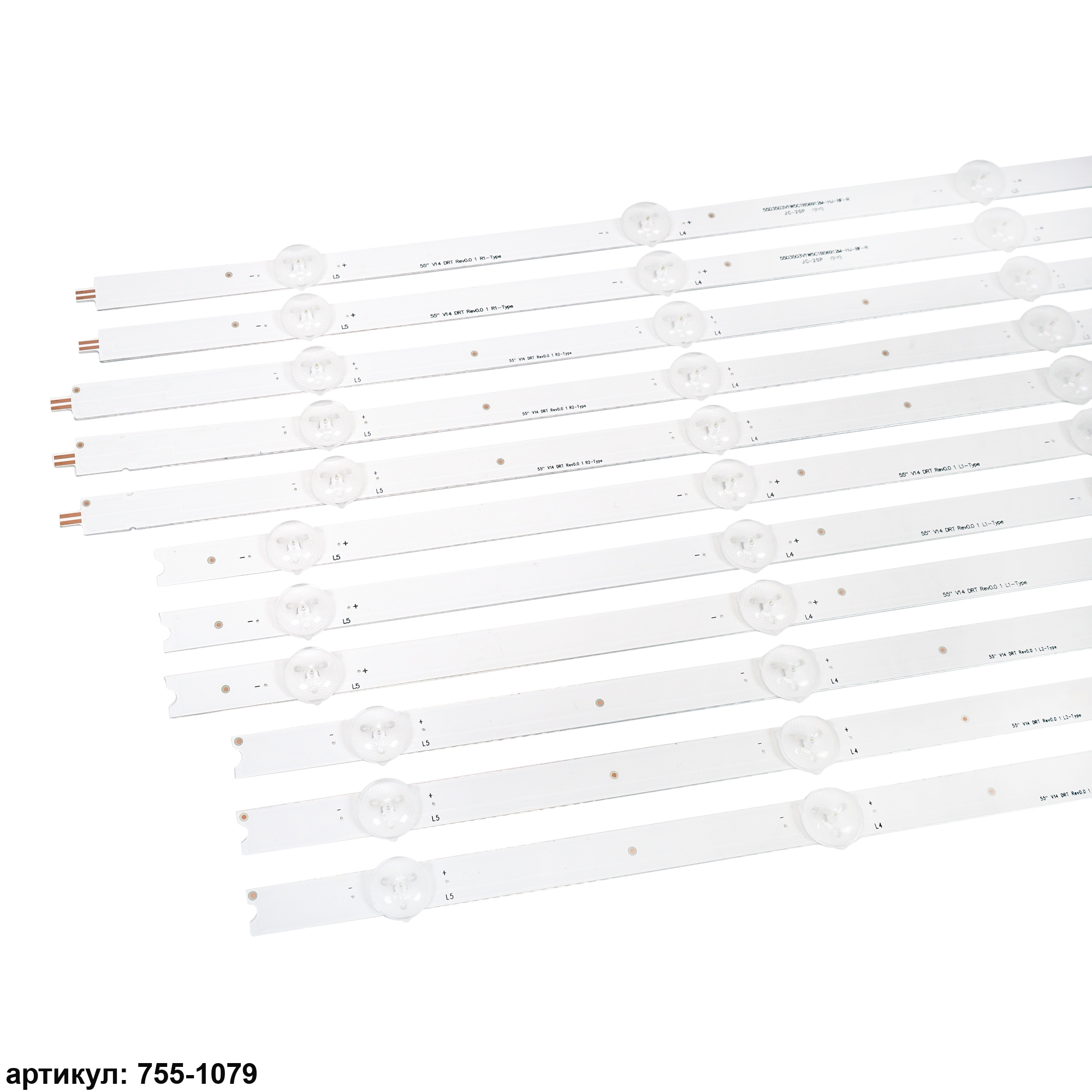 Комплект планок светодиодной подсветки для телевизора LG 55'/ (5 led 3V 1110mm)Комплект включает в себя:- 3 планки 55' V14 DRT Rev0.0 1 L1-Type 6916L-1579A, 6916L-1447A- 3 планки 55' V14 DRT Rev0.0 1 R1-Type 6916L-1581A, 6916L-1449A- 3 планки 55' V14 DRT Rev0.0 1 L2-Type 6916L-1580A, 6916L-1448A- 3 планки 55' V14 DRT Rev0.0 1 R2-Type 6916L-1582A, 6916L-1450AСовместимые p/n: 6916L-1447A, 6916L-1448A, 6916L-1449A, 6916L-1450A