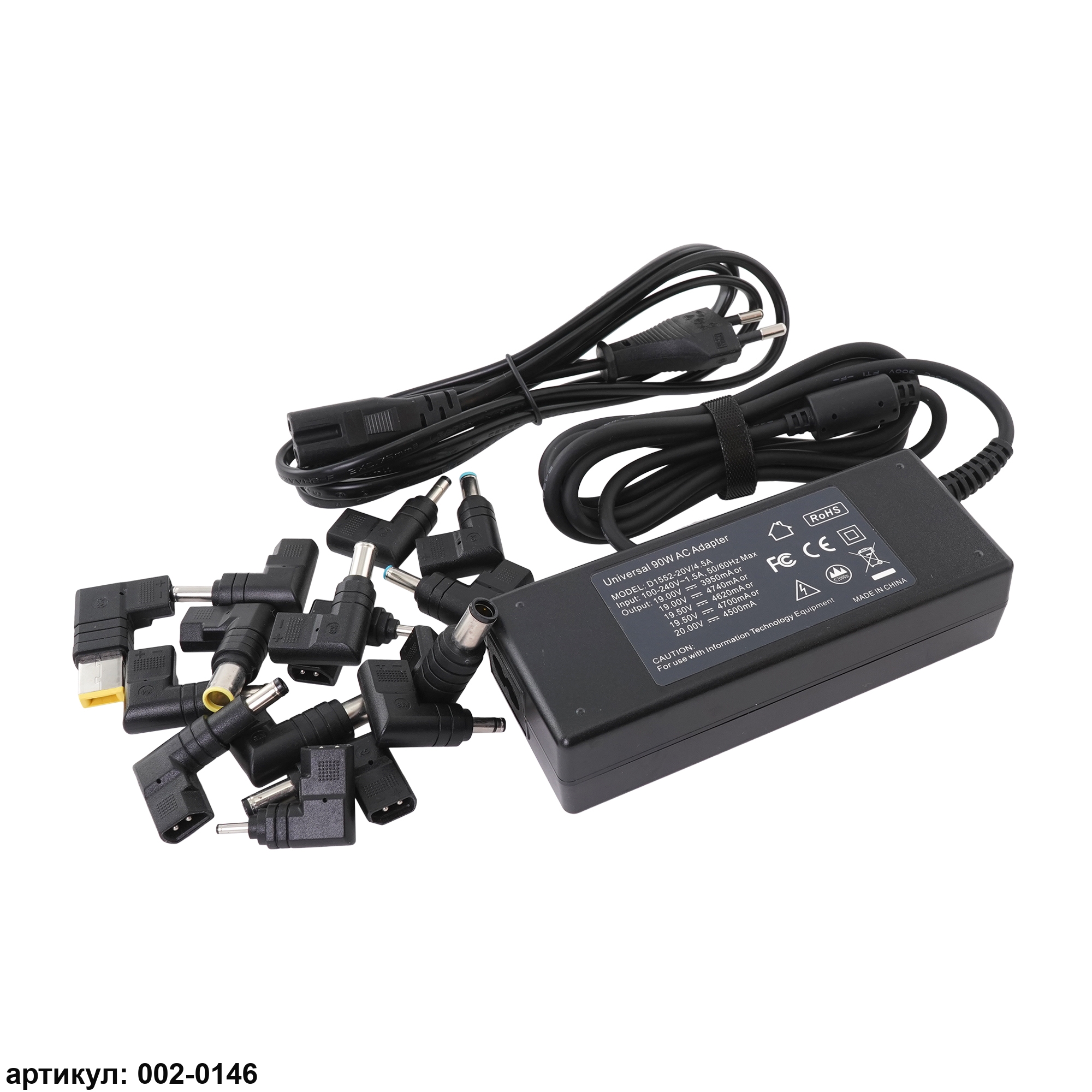 Универсальное зарядное устройство для ноутбука (90W) 19V 3.95A/4.47A, 19.5V 4.62A/4.7A, 20V 4.5A (15 насадок)