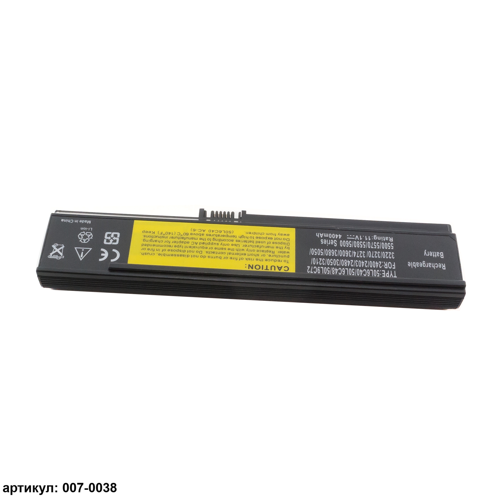 Совместимые P/N: 50L6C40, L50L6C48, L50L6C72, L50L9C72, 3UR18650F-3-QC262, 3UR18650Y-2-QC261, 3UR18650Y-3-QC262, 4UR18650Y-QC271, BATEFL50L6C40, BATEFL50L6C48, BATEFL50L6C72, BATEFL50L9C72, BT.00603.006, BT.00603.010, BT.00603.030, BT.00603.031, BT.00604.001, BT.00604.004, BT.00604.007, BT.00604.012, BT.00903.007, CGR-B/6H5, CL1335B.806, E204007, LC.BTP00.001, LC.BTP00.002, LC.BTP01.006, LIP6220QUPCE236872, LIP6220QUPC SY6