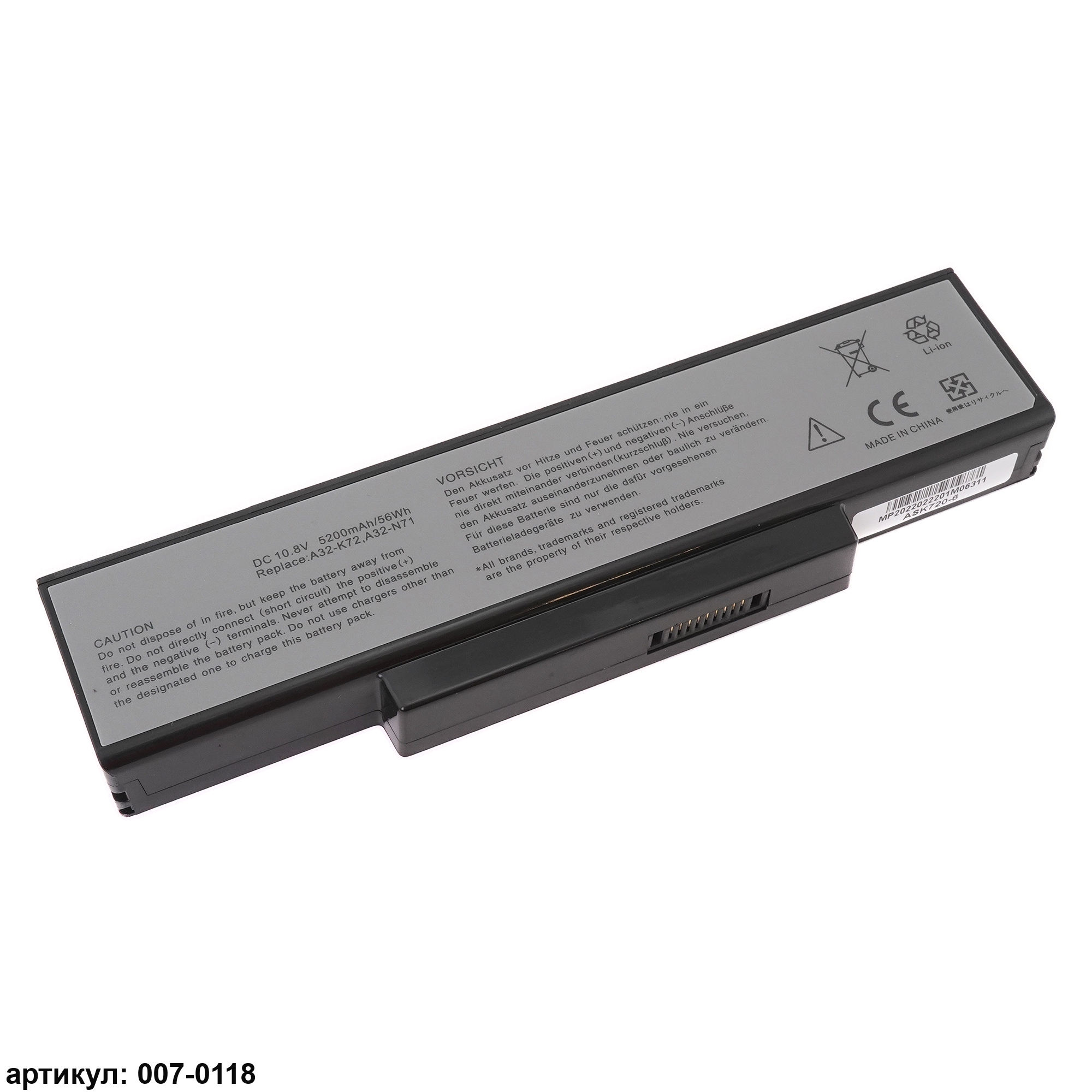 Совместимые P/N: A32-K72, A33-K72, A32-N71, A32-N73, 70-NX01B1000Z, 70-NXH1B1000Z, 70-NZY1B1000Z, 70-NZYB1000Z, 90-XB2KN0BT00000Y