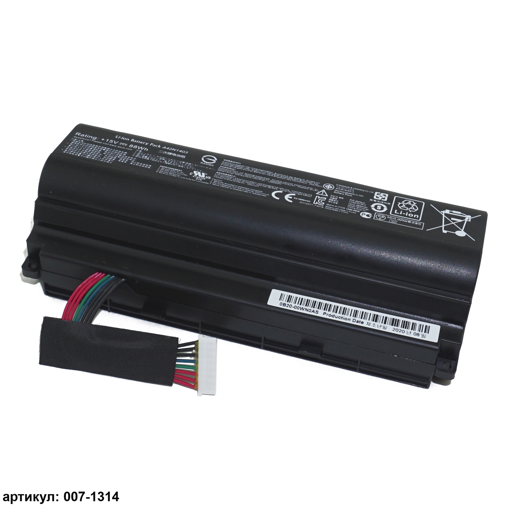 Подходит к сериям ноутбуков: Asus G751, G751JM, GFX71, GFX71JYСовместимые P/N: A42N1403, A42LM93, 4ICR19/66-2, 0B110-00290000, 0B110-00340000