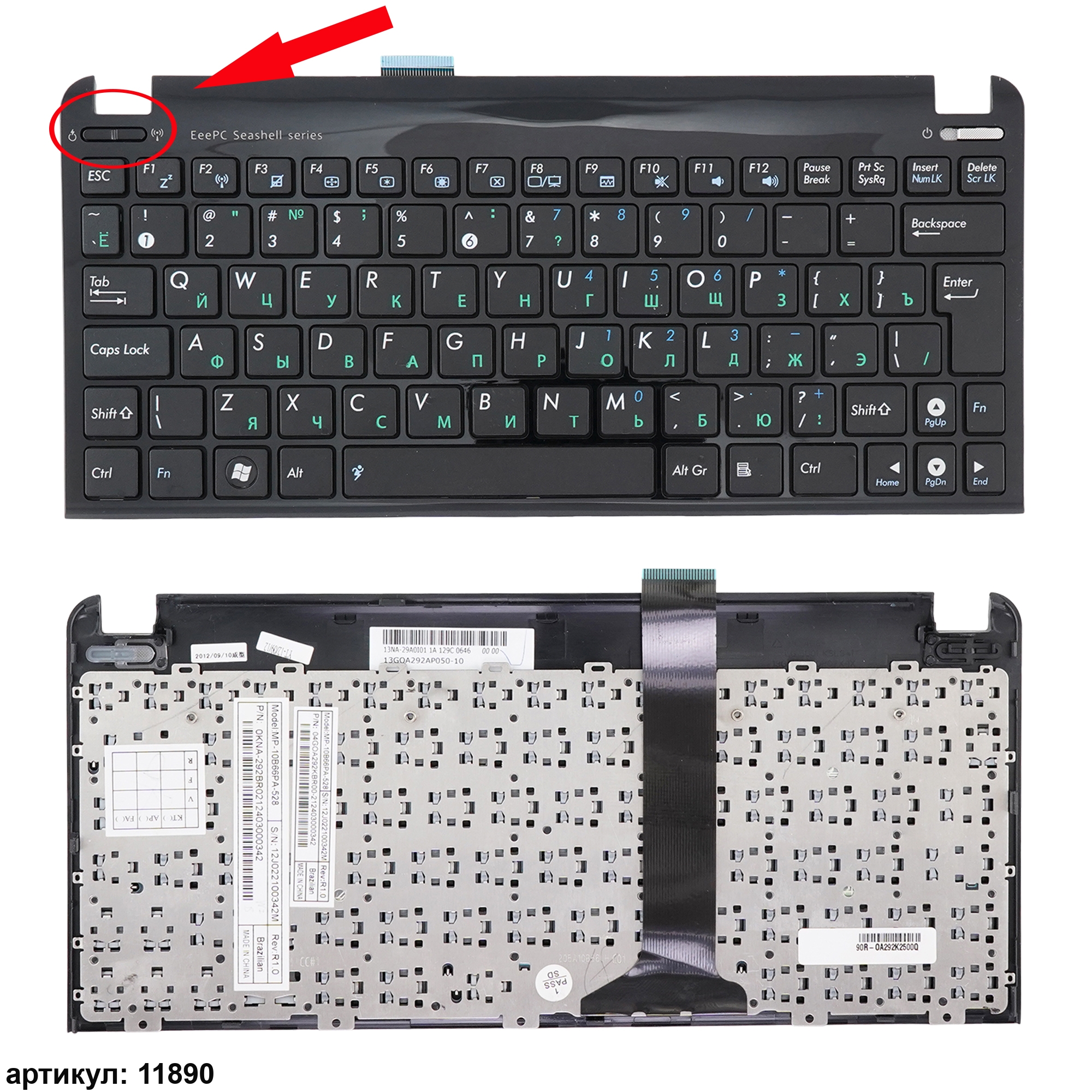 Клавиатура подходит к ноутбукам: Asus Eee PC 1011, 1011B, 1011BX, 1011C, 1011CX, 1011P, 1011PX, 1015, 1015B, 1015BX, 1015CX, 1015P, 1015PD, 1015PE, 1015PED, 1015PEM, 1015PN, 1015PW, 1015PX, 1015T, 1015TX, 1016P, 1016PT, 1018P, 1025C, 1025CE, X101, X101C, X101CH, X101HСовместимые P/n: 13GOA3D2AP020, 13NA-3DB0204, MP-10B63SU-528, 04GOA292KRU00, OKNA-292RU, V103662GS1, V103662HS1, 0KNA-292KRU00, 90R-OA292K2000Q, MP-10B63SU-920, RU V103646GS1, 04GOA292KRU00-2, 04GOA292KRU00-1, 0KNA-292RU02