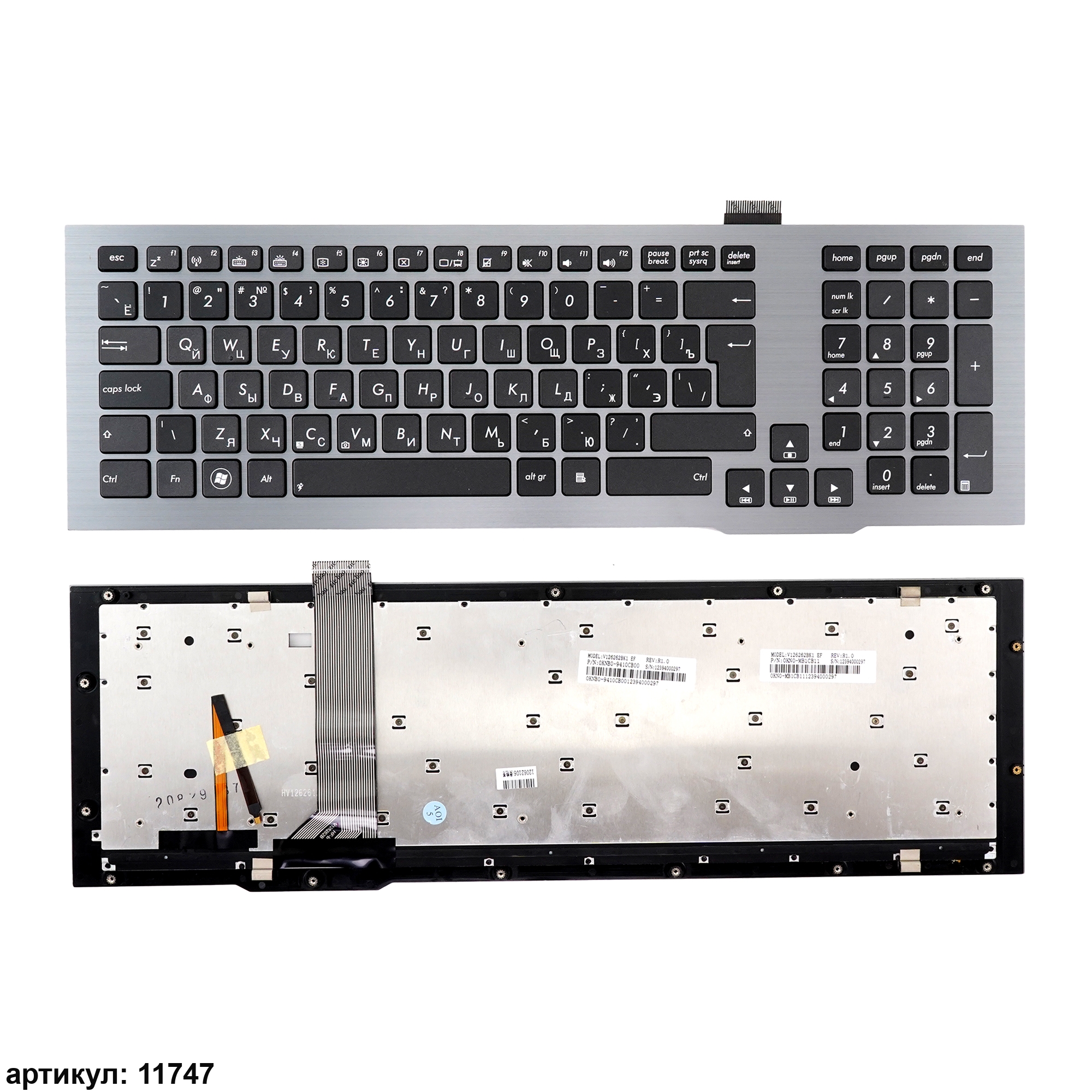 Клавиатура подходит к ноутбукам: Asus G75, G75V, G75VW, G75VXСовместимые P/n: 0KBN0-9410JP00, 0KN0-MB1ND11, 0KN0-MB1US11, 0KN0-MB2US11, 0KNB0-9410ND, 0KNB0-9410RU00, 0KNB0-9410US00, 0KNB0-9414US00, OKN0-MB1JP11, V126262BJ1, V126262BS1, V126262CS1