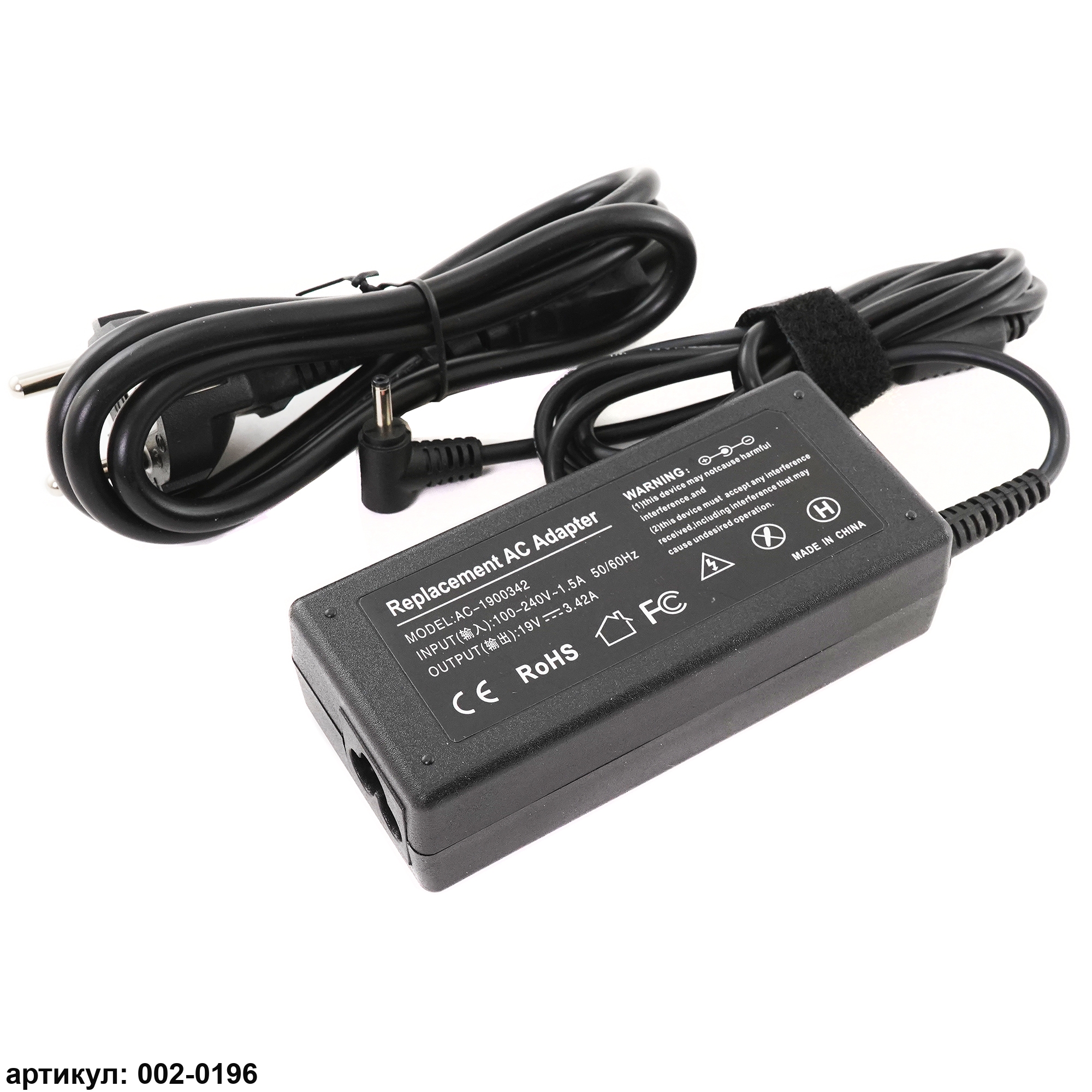 Подходит к сериям ноутбуков: Azerty AZ-1508, AZ-1523; Clevo 19V 3.42A (65W) 3.5х1.35мм