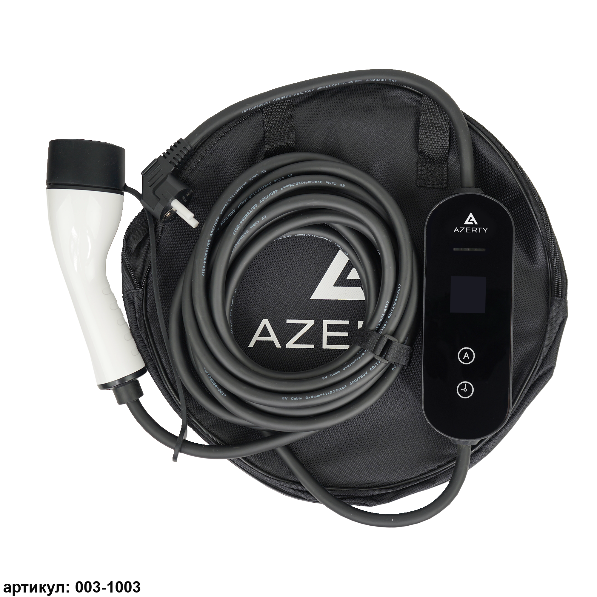 Зарядное устройство для электромобиля. Разъем Type 2 для большинства европейских марок.  Регулируемая сила тока и время заряда. Длина кабеля 7 метров. Сумка для переноски в комплекте. Мы заботимся о вашей безопасности, поэтому зарядное устройство для электромобиля оснащено рядом защитных функций:
