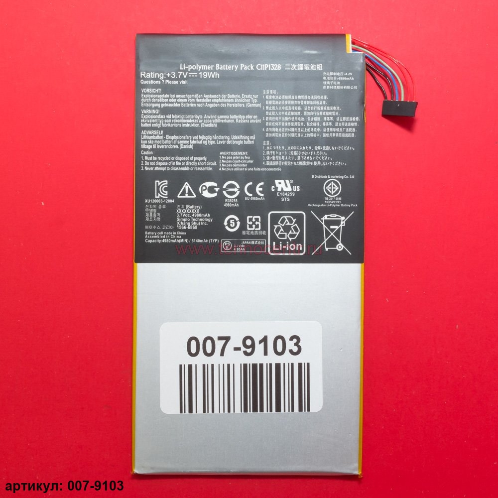 Подходит к планшетам: Asus Transformer Pad TF103C (K010)Совместимые p/n: 0B200-00980000M, C11P1328, C11PQ2H