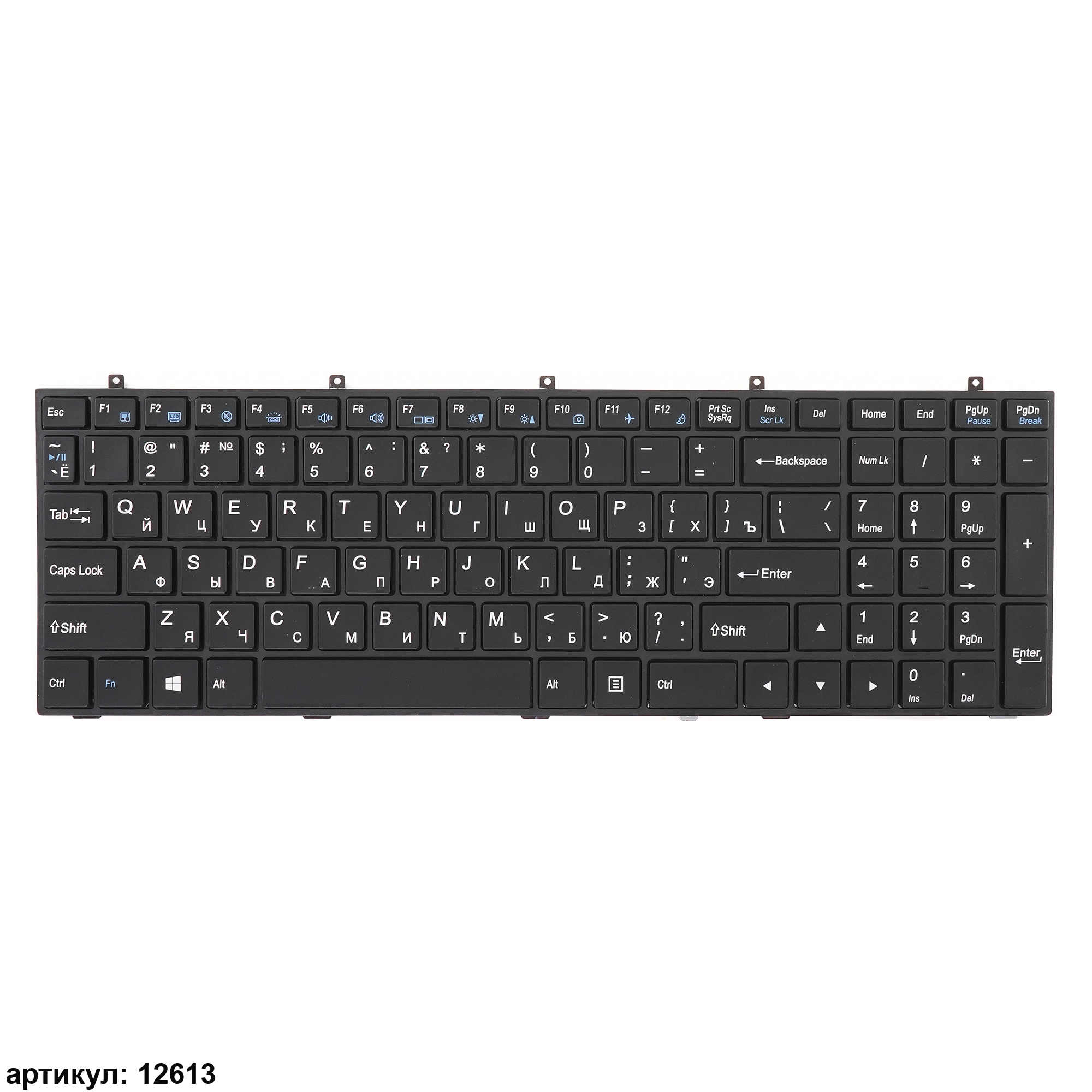 Клавиатура подходит к ноутбукам: Clevo W350, W370, W650, W655, W670, W370, W350et, W370et, DNS 0170720, 0123975, 0170728, 0164801, 0164802