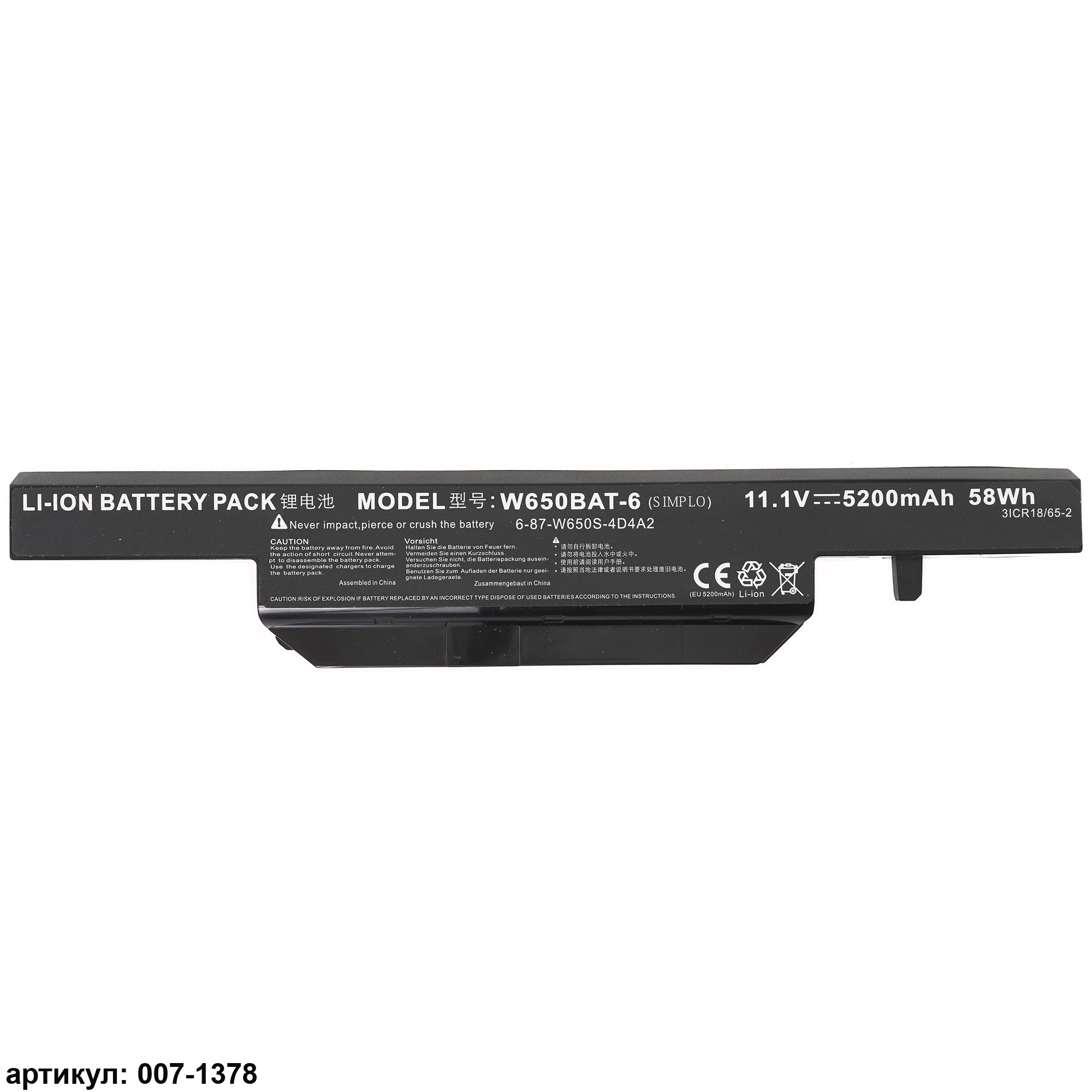 Совместимые P/N: 6-87-W650S-4D4A1, 6-87-W650S-4D7A1, 6-87-W650S-4D7A2, W650BAT-6, 6-87-W650S-4D4A2, 6-87-W650S-4E7, 6-87-W650S-4E72, W650BAT-6