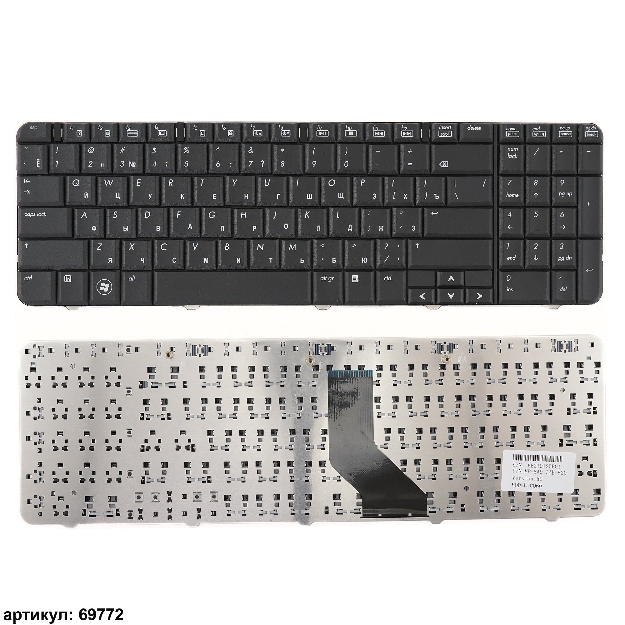 Клавиатура подходит к ноутбукам: HP Compaq Presario CQ60, G60, CQ60-101er, CQ60-106er, CQ60-107er, CQ60-200er, CQ60-205er, CQ60-207er, CQ60-210er, CQ60-305er, CQ60-410er, CQ60-420er
