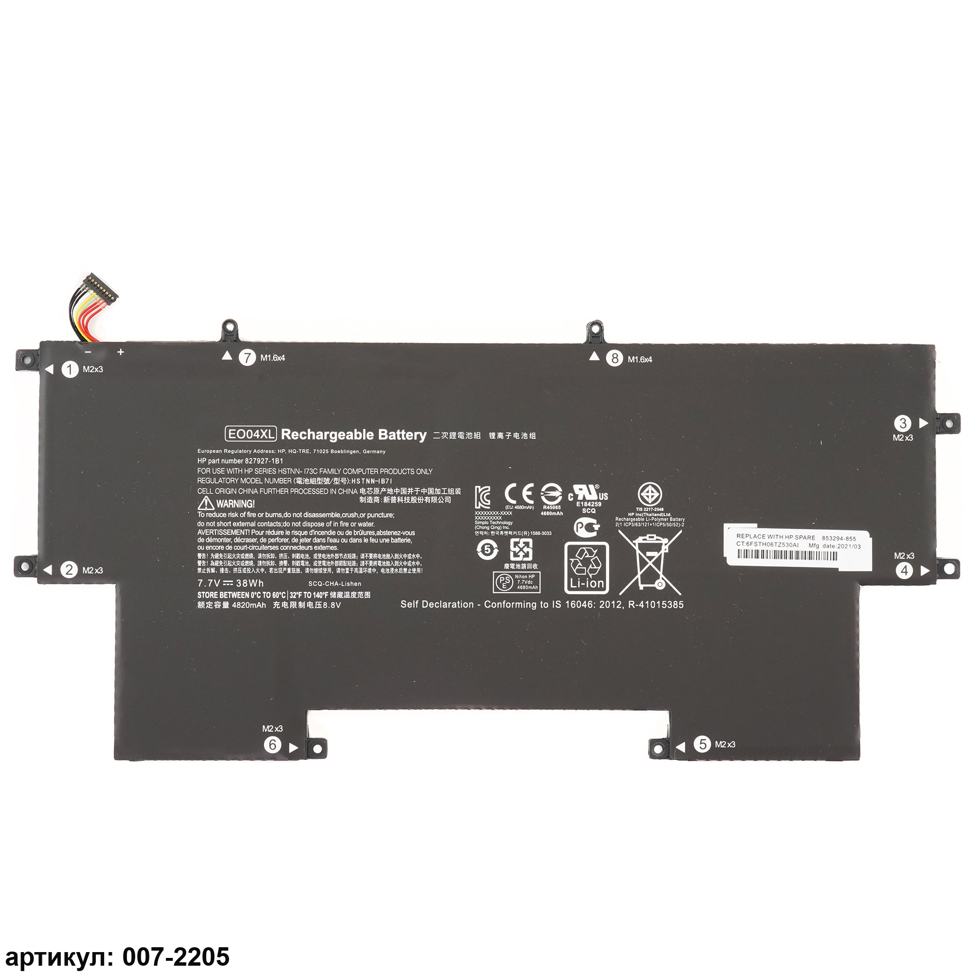 Совместимые P/N: 827927-1B1, 827927-1C1, 828226-005, EO04XL, HSTNN-I73C, HSTNN-IB71