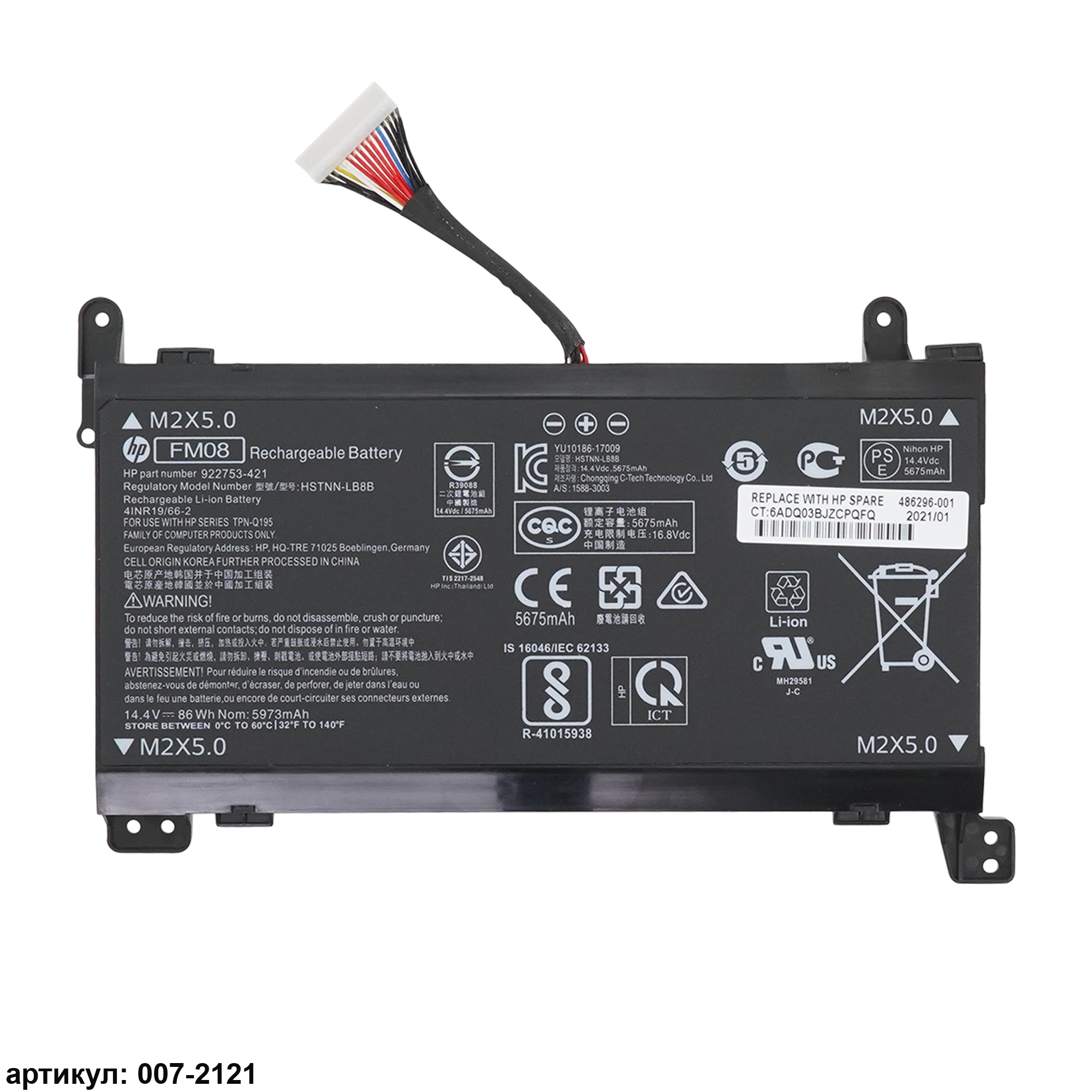 Совместимые P/N: CS-HPM170NB, 922752-421, 922753-421, 922976-855, FM08, FM0808, FM08082-CL, FM08086, FM08086-CL, HSTNN-LB8A, HSTNN-LB8B, TPN-Q195