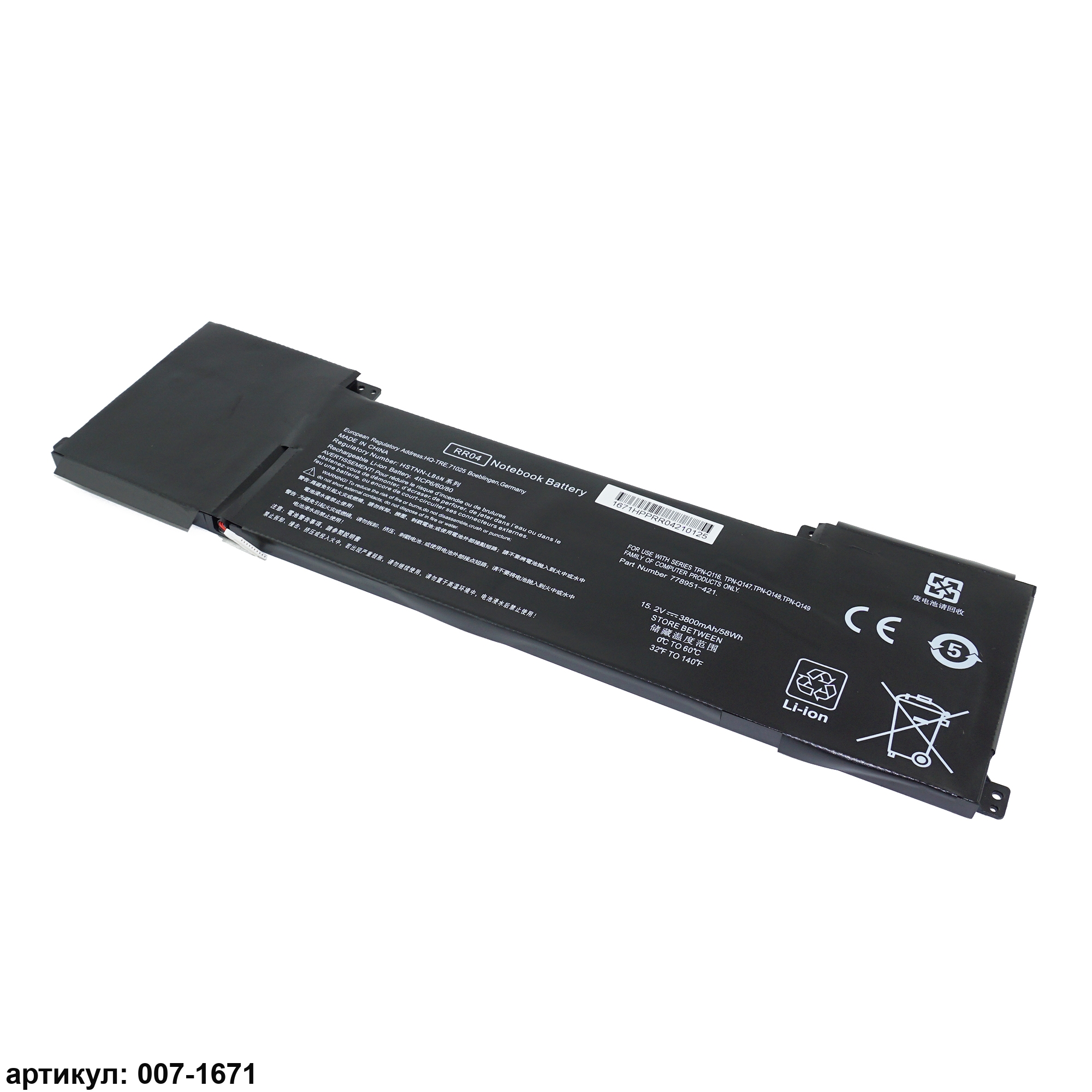 Совместимые P/N: 778951-421, 778978-005, 778978-006, HP011403-PRR14G01, HSTNN-LB6N, RR04, RR04058-PR, RR04XL, TPN-W111