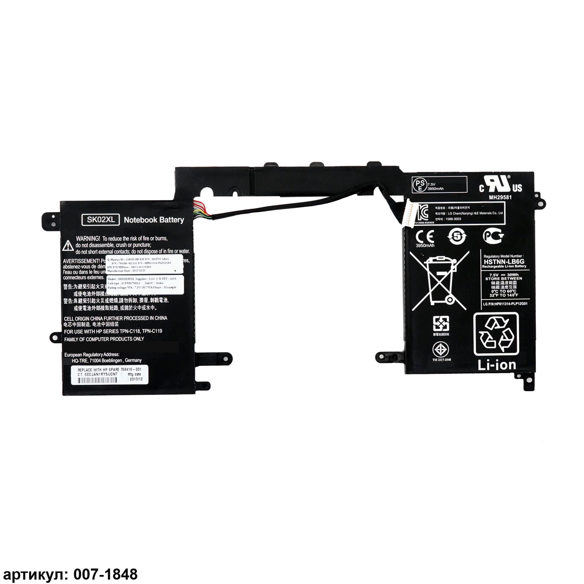 Совместимые P/N: 756186-421, HSTNN-LB6G, SK02XL, TPN-C118, TPN-C119, 756186-2C1, 756186-271, 756416-001, SK02030XL-PL, SK02030XL, HSTNN-DB6G