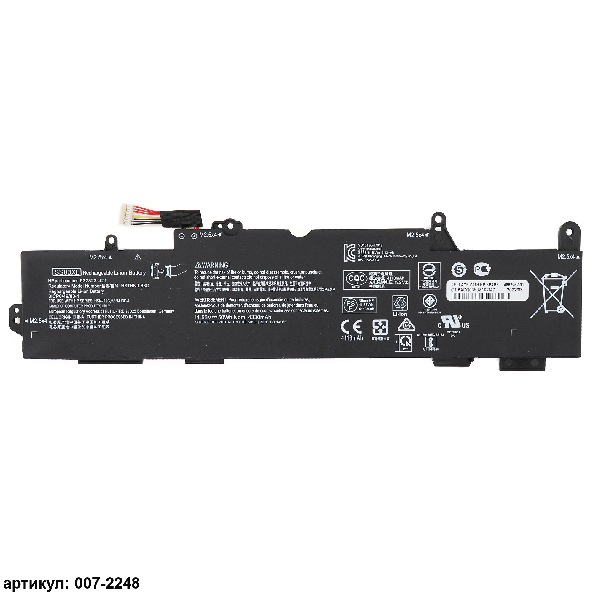 Совместимые P/N: SS03XL, HSTNN-LB8G, HSTNN-IB8C, 932823-421, 933321-855, HSN-I12C, HSN-I13C-4, HSN-I13C-5, HSN-I16C, HSN-I17C-4, HSN-I17C-5