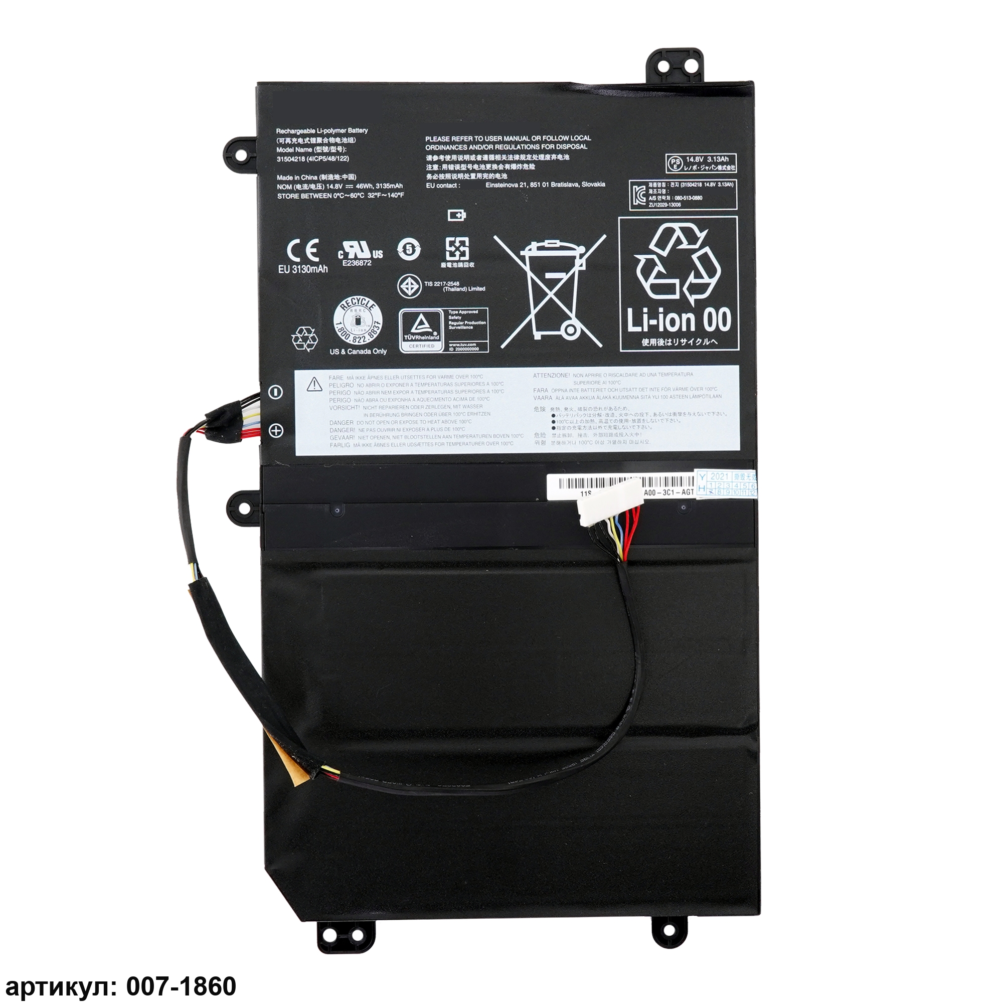 Подходит к сериям ноутбуков: Lenovo IdeaCentre Flex 20Совместимые P/N: 4ICP5/48/122, 31504218, 31504217