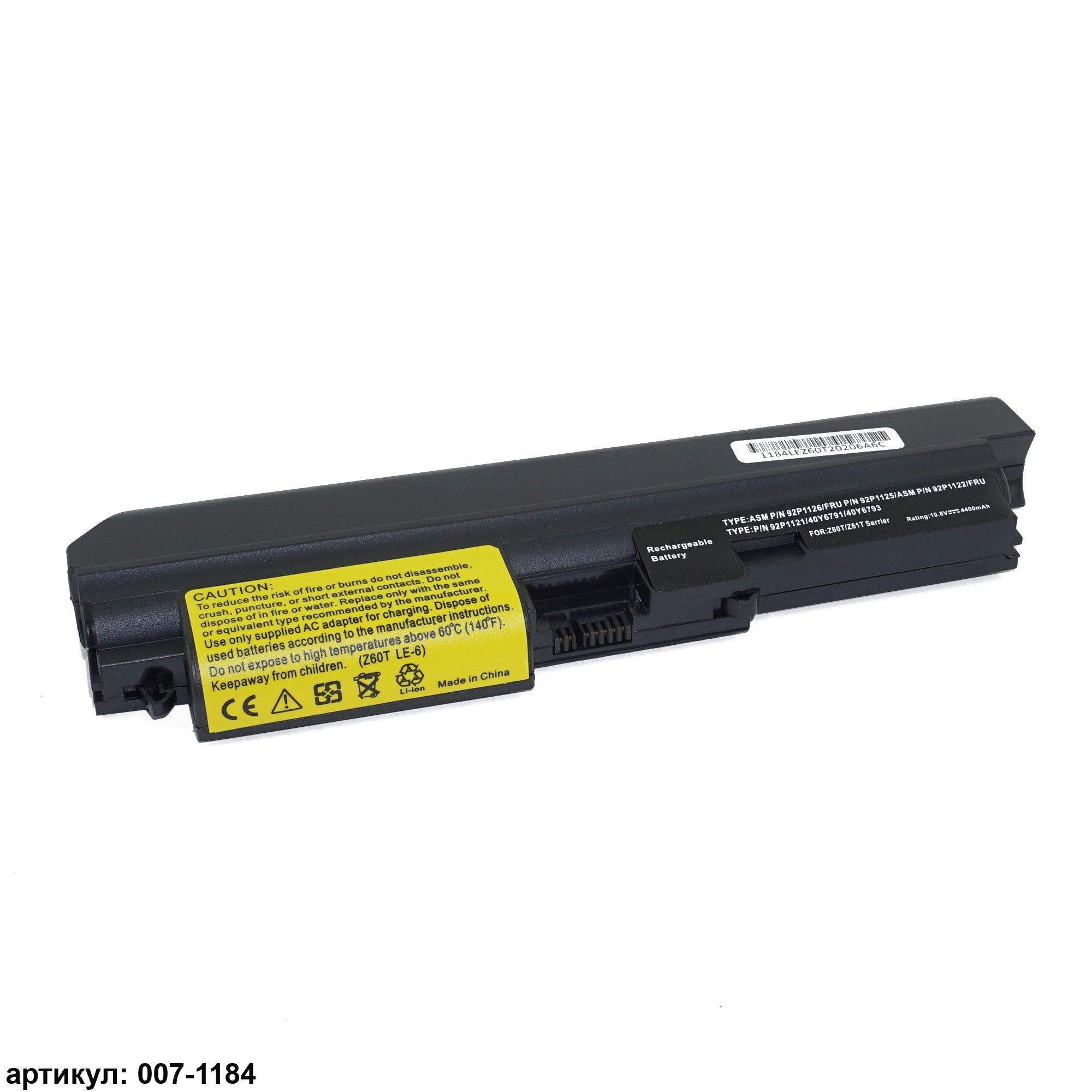 Подходит к сериям ноутбуков: Lenovo ThinkPad Z60T, Z61TСовместимые P/N: 40Y6791, 40Y6793, 92P1122, 92P1126, 92P1121, 92P1123, 92P1125, CL7125B.806