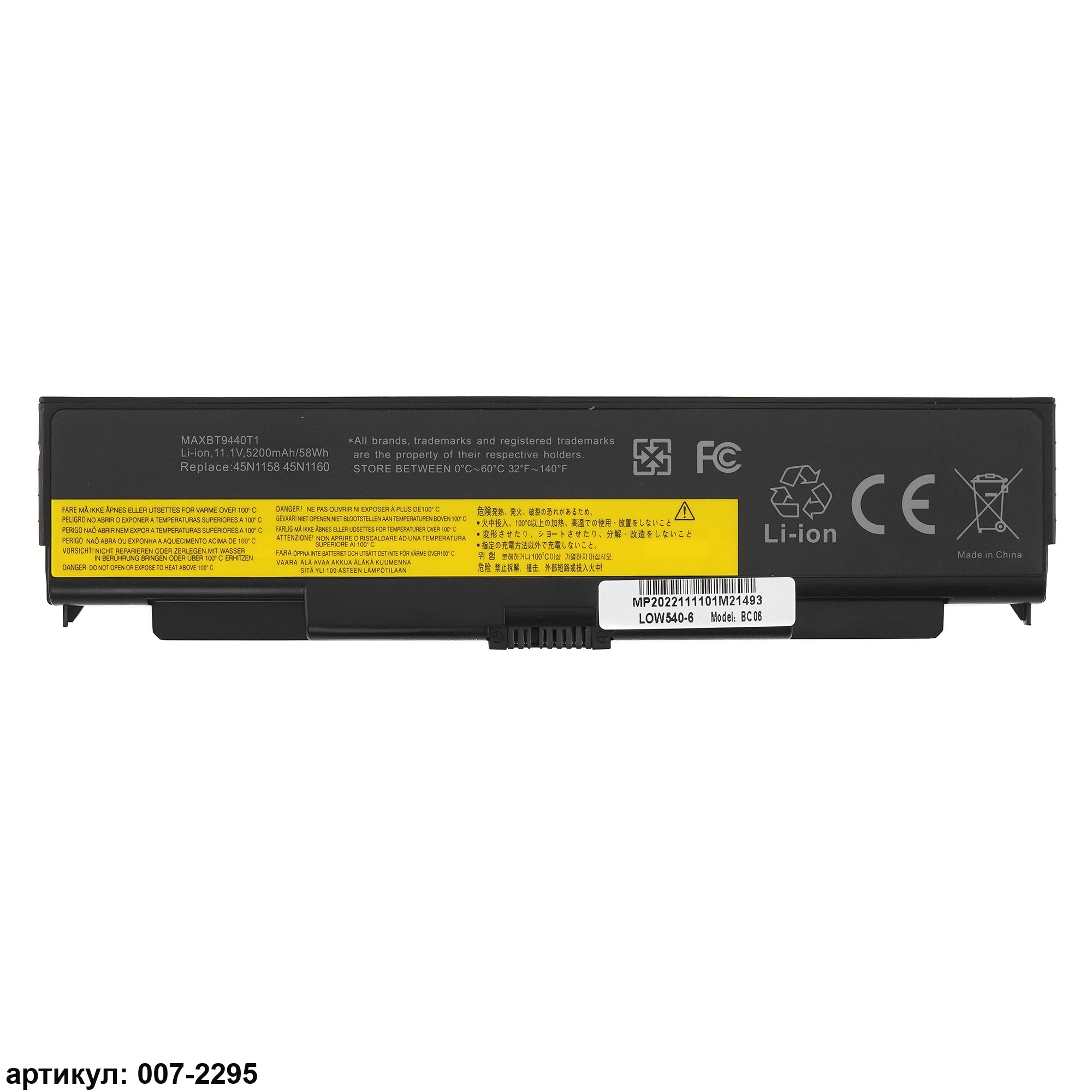 Подходит к сериям ноутбуков: Lenovo ThinkPad T440P, T540P, W540, W541, L440, L540Совместимые P/N: 45N1144, 45N1145, 45N1148, 45N1159, 45N1158