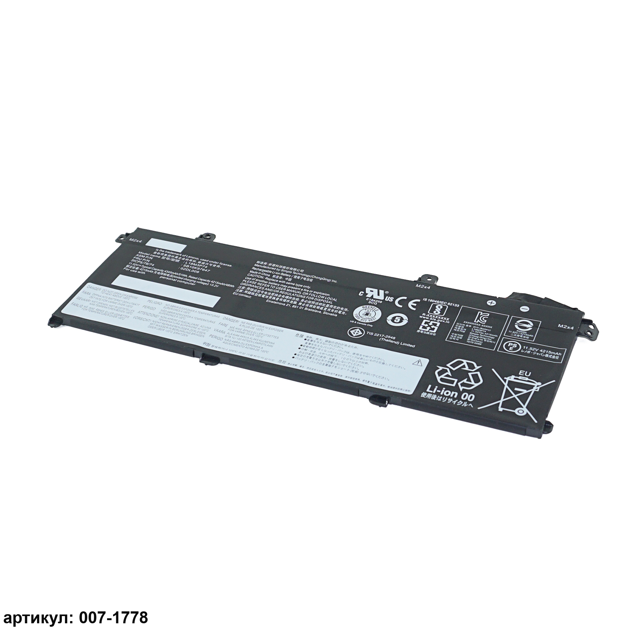 Аккумулятор для ноутбука Lenovo (L18M3P74) T490, T14 Gen 1 оригинал