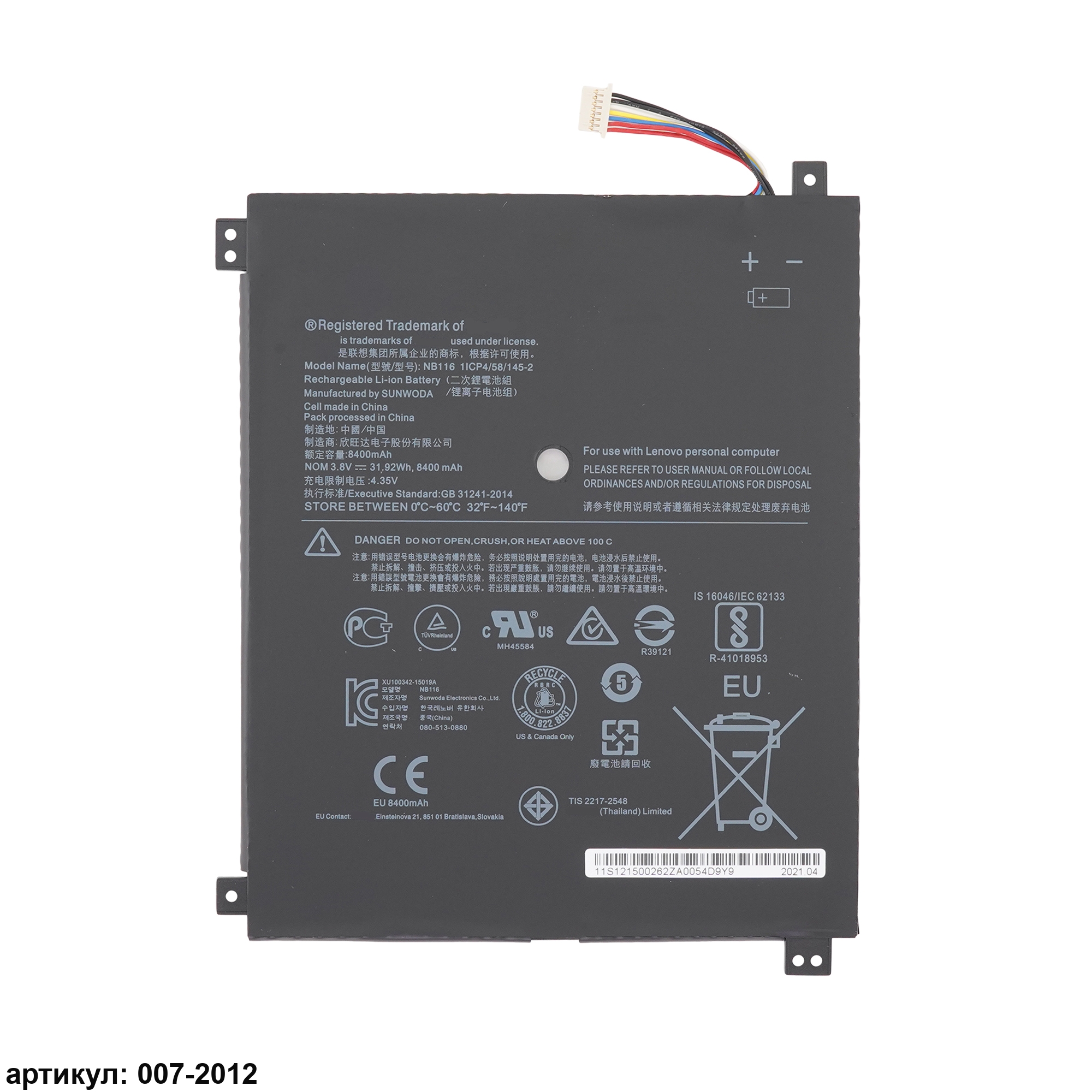 Совместимые P/N: NB116, 5B10K37675