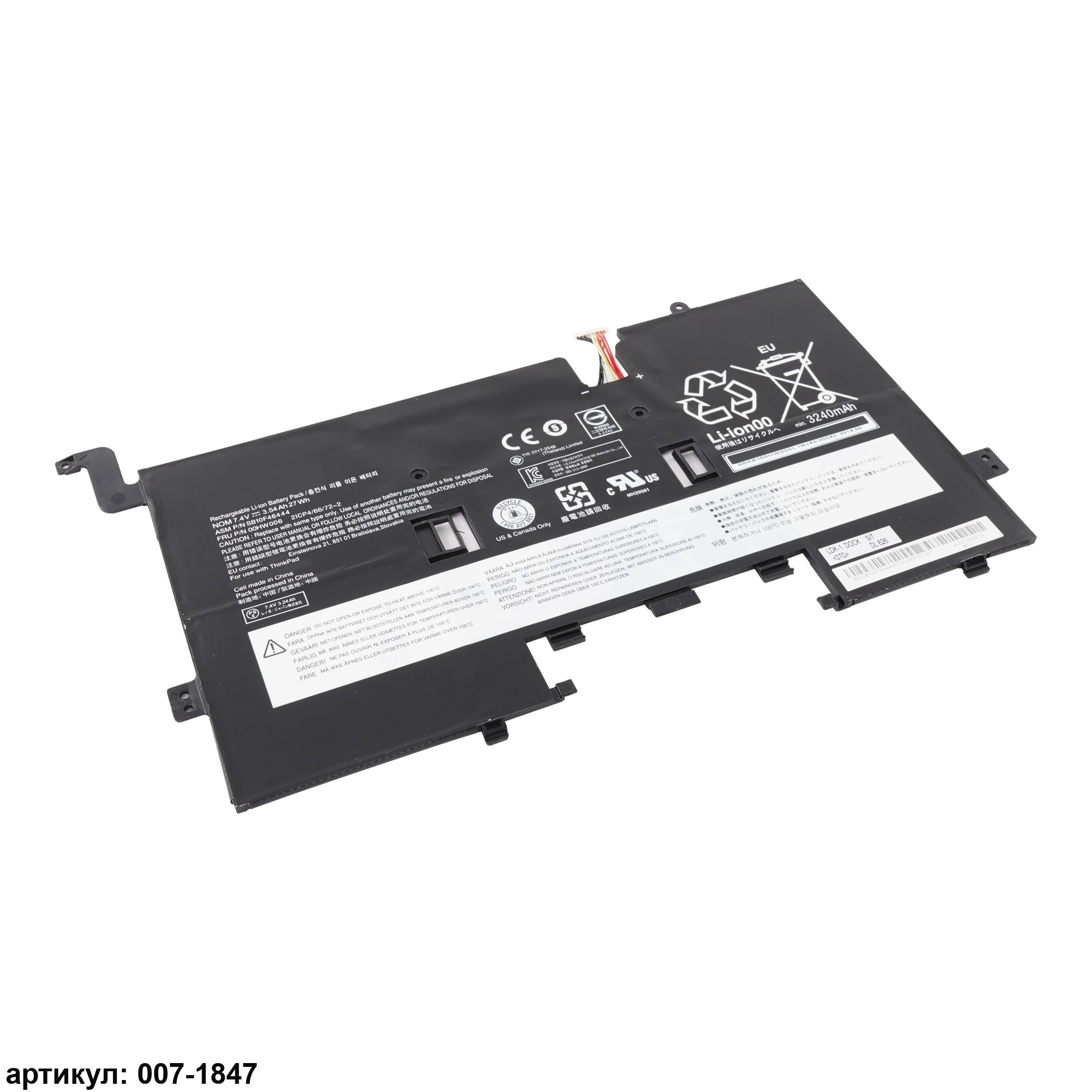 Подходит к сериям ноутбуков: Lenovo ThinkPad Helix 2Совместимые P/N: 00HW006, SB10F46444, 00HW007, SB10F46445, 2ICP4/66/73-2