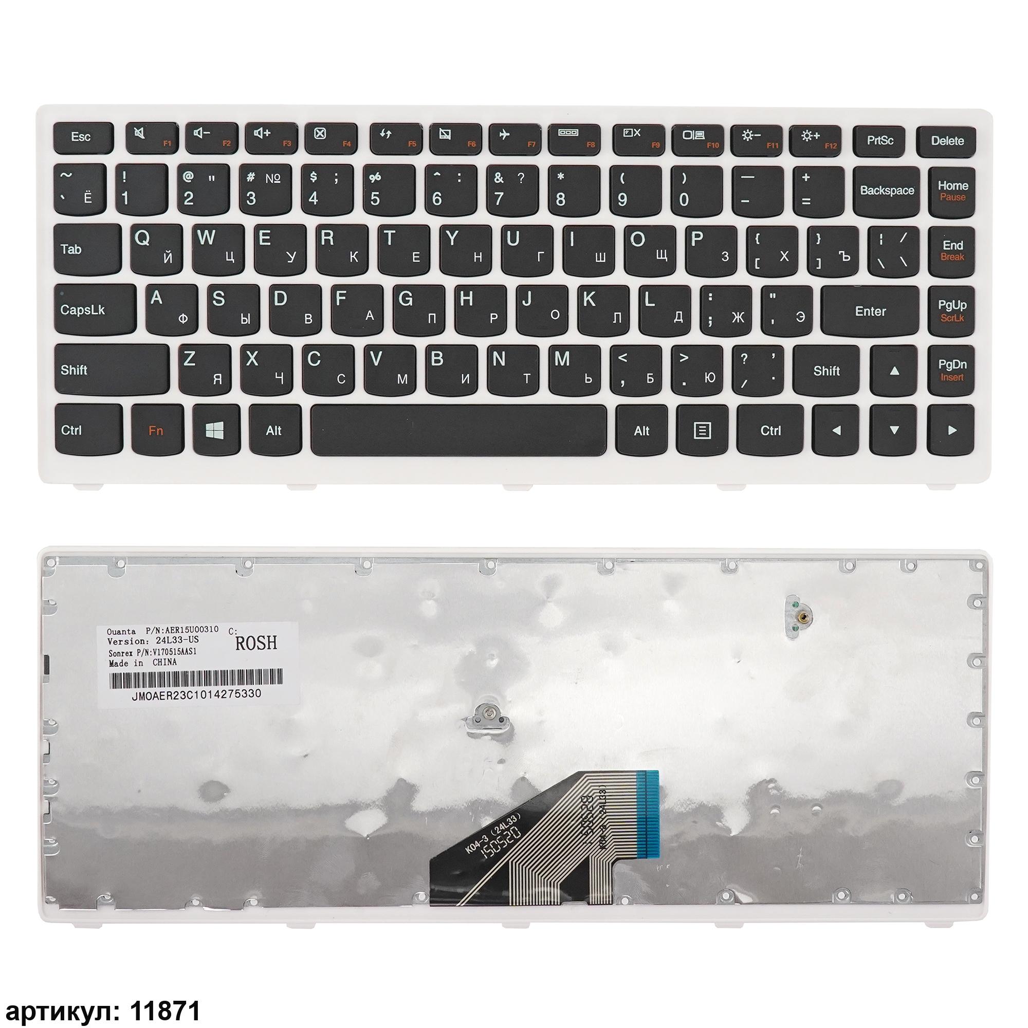 Обязательно сравнивайте Вашу клавиатуру с представленной на фотографии: направление и приблизительная длина шлейфа, крепления, размер кнопки Enter. Одинаковые модели ноутбуков могут использовать разные модификации клавиатур. Даже если на сайте модель, парт-номер стоят в совместимых, она может не подойти вам.