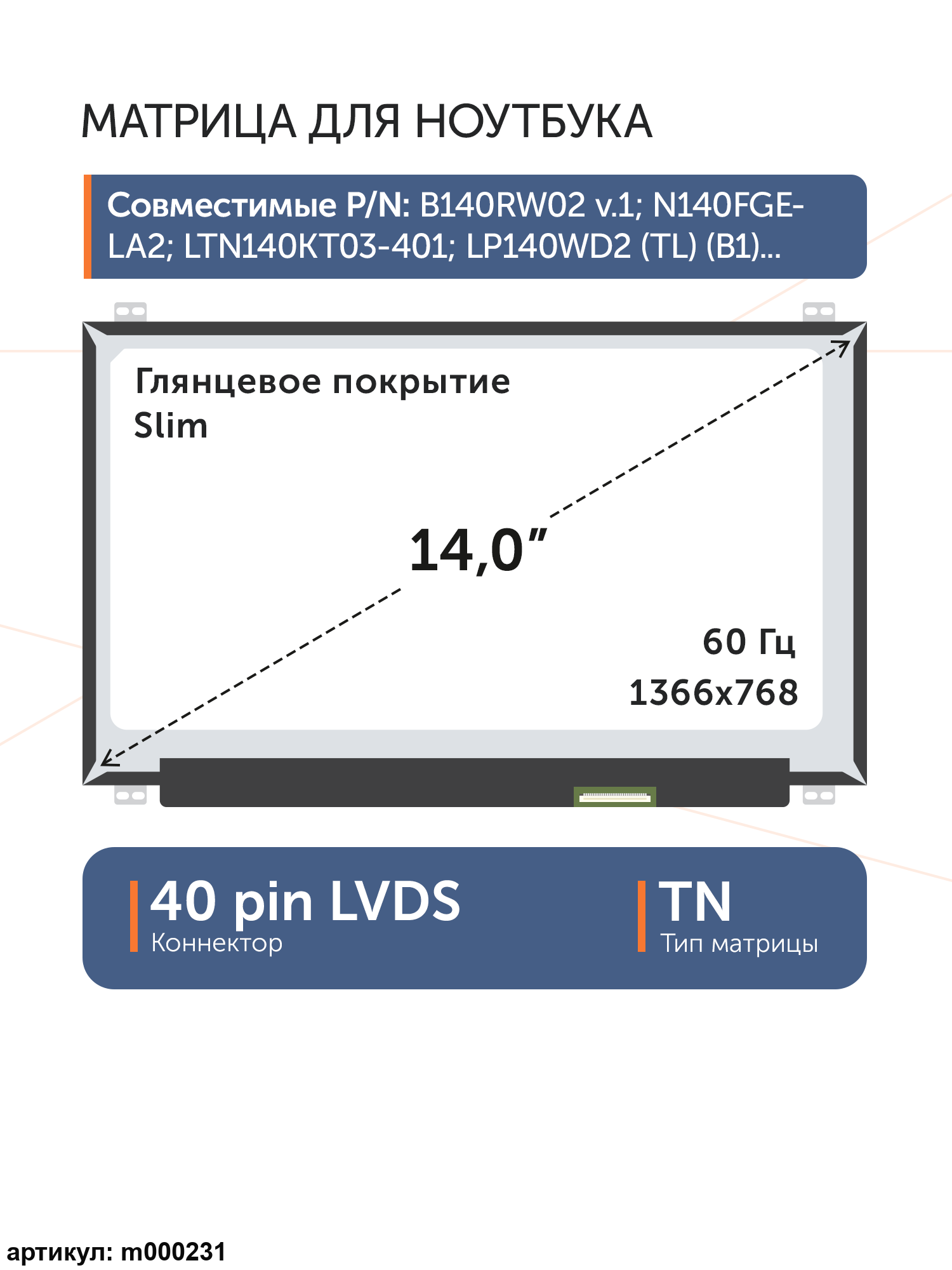 m000510 | LP140WH8 (TL)(A1) | 0 | нет | ![]() |