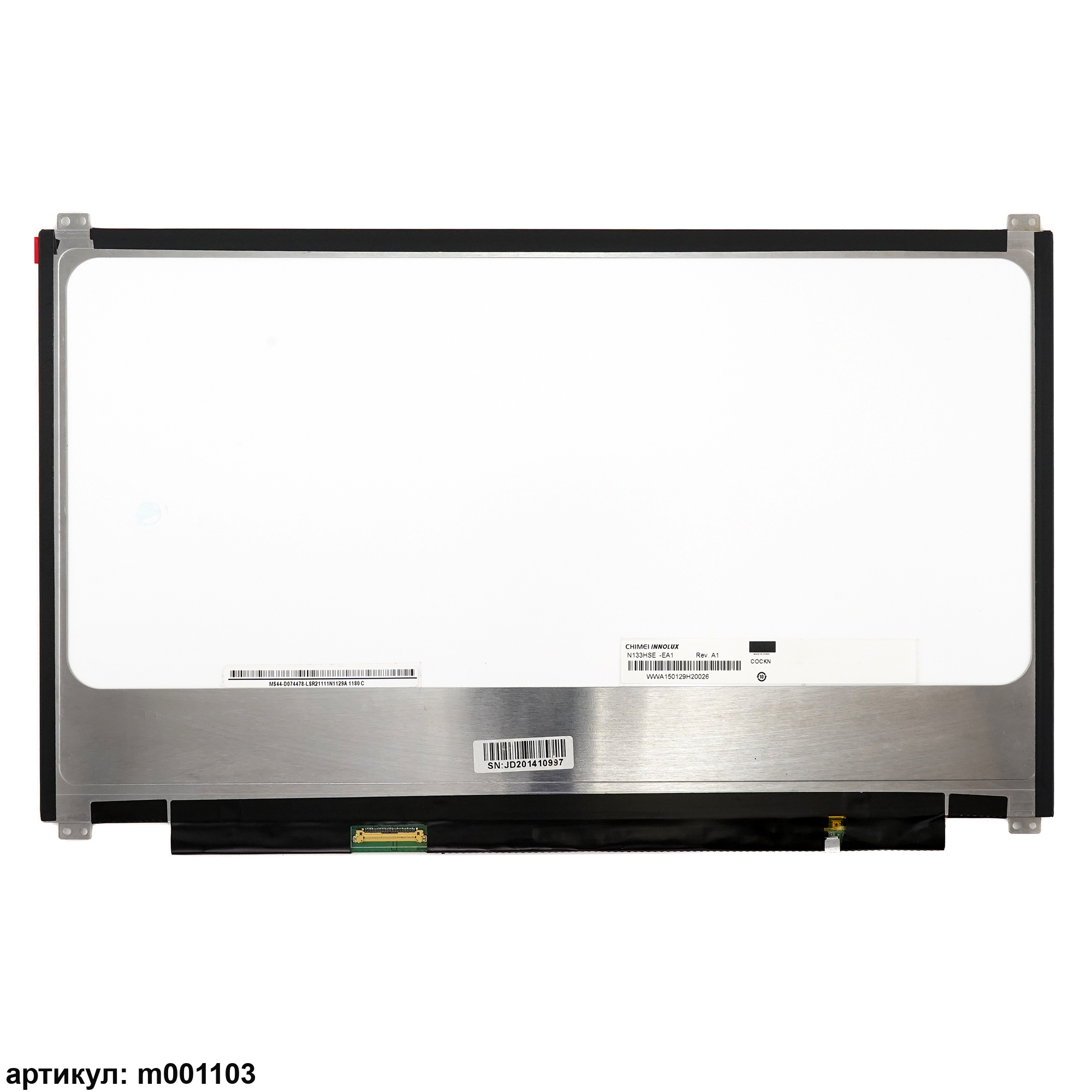 Матрица тонкая (slim), крепления (ушки) расположены сверху и снизу.Разъем подключения расположен слева внизу на внешней плате.Совместимые модели: N133HSE-EA1 Rev.A1, N133HSE-EA1, N133HSE-EA3, N133HSE-EB3, N133HSE-EB1