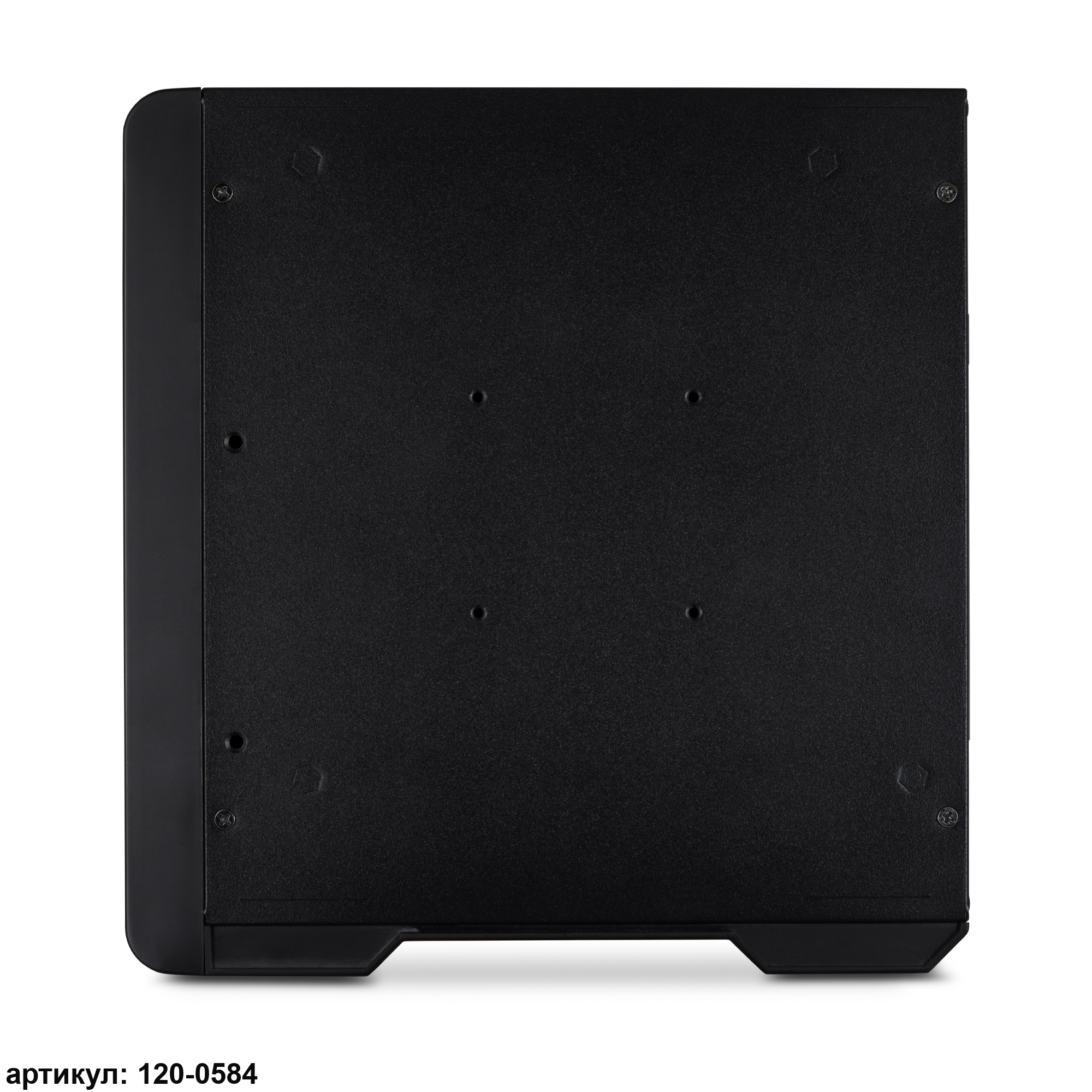 • Компактный корпус можно ориентировать как вертикально, так и горизонтально. Он выполнен из металла и пластика чёрного цвета. На передней панели в легком доступе расположены разъемы USB, а также разъемы для подключения наушников и микрофона. Перфорированная боковая панель обеспечивает отличную циркуляцию воздуха, способствующую охлаждению компонентов.