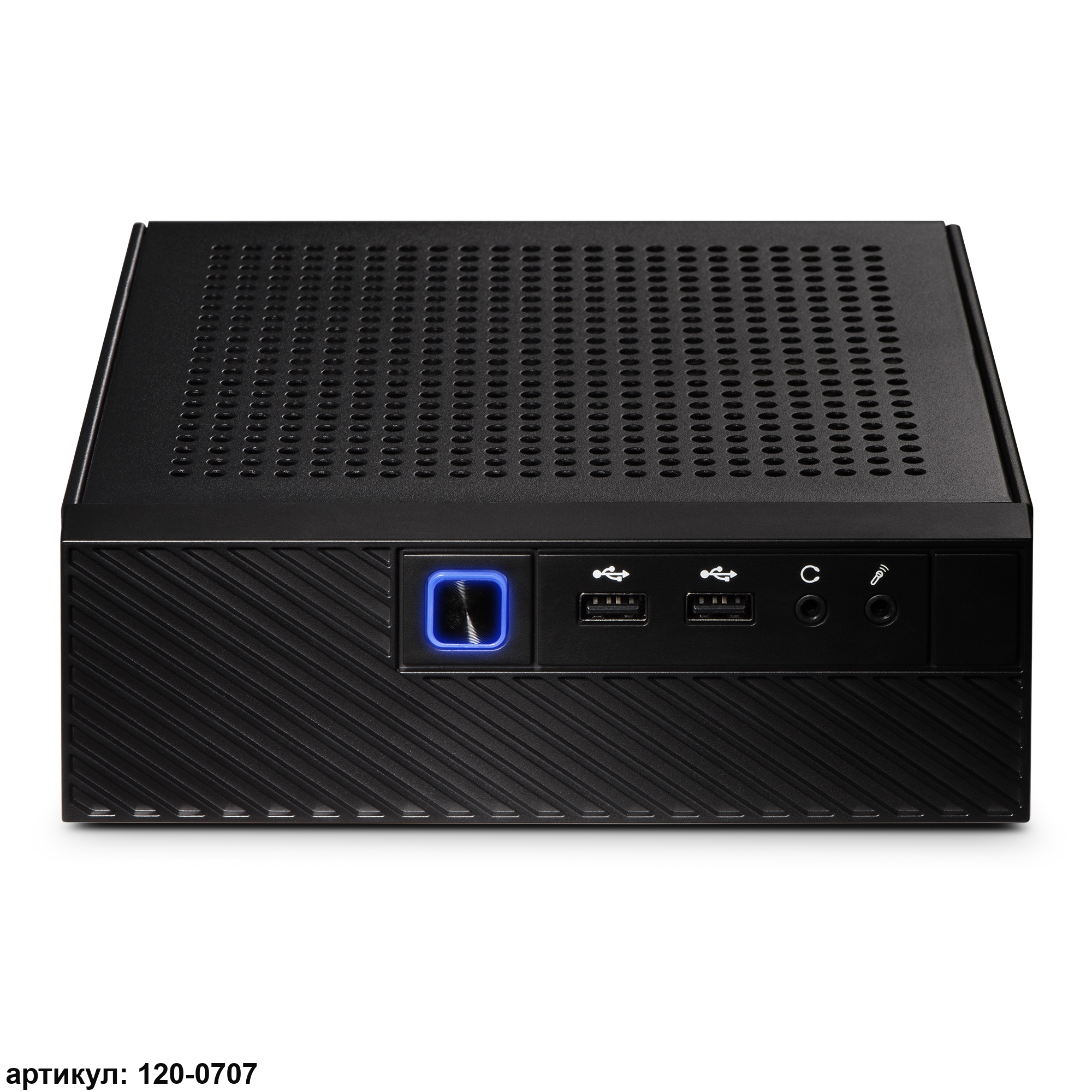• В металлическом с пластиковыми вставками корпусе черного цвета, угадываются нотки корпоративного стиля. Четыре перфорированные панели позволяют воздуху свободно циркулировать внутри, обеспечивая хорошее охлаждение процессора и компонентов устройства. На передней панели для удобства расположены разъемы USB и mini-jack для быстрого подключения съёмных носителей информации, микрофона и наушников соответственно.