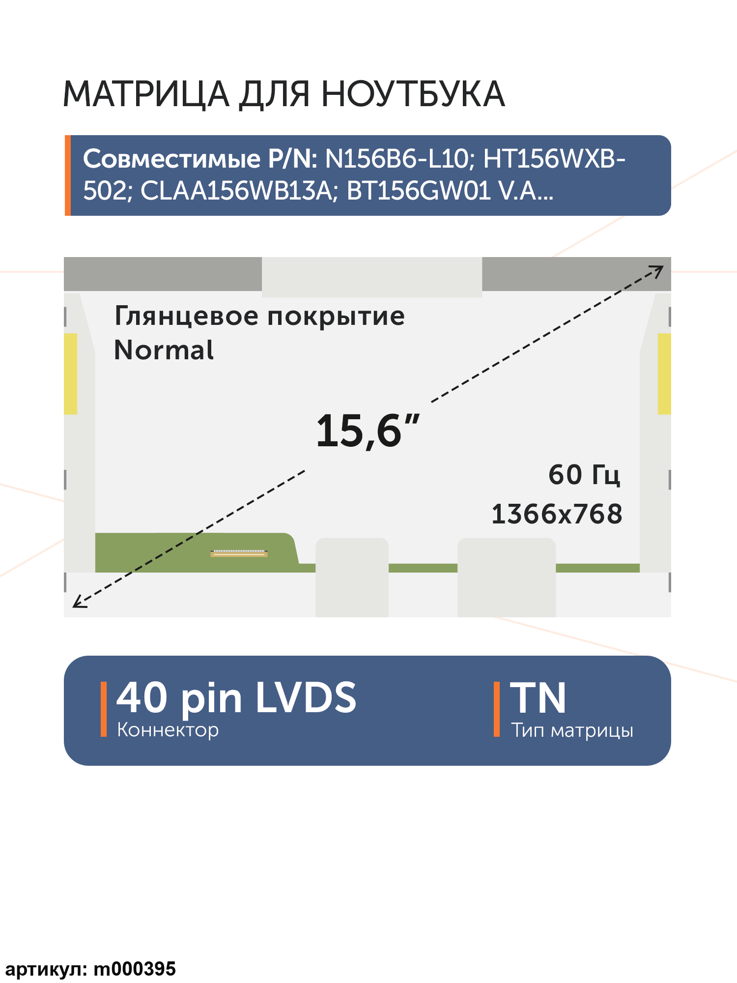 m000601 | LP156WH2 (TL)(A1) | 0 | нет | ![]() |