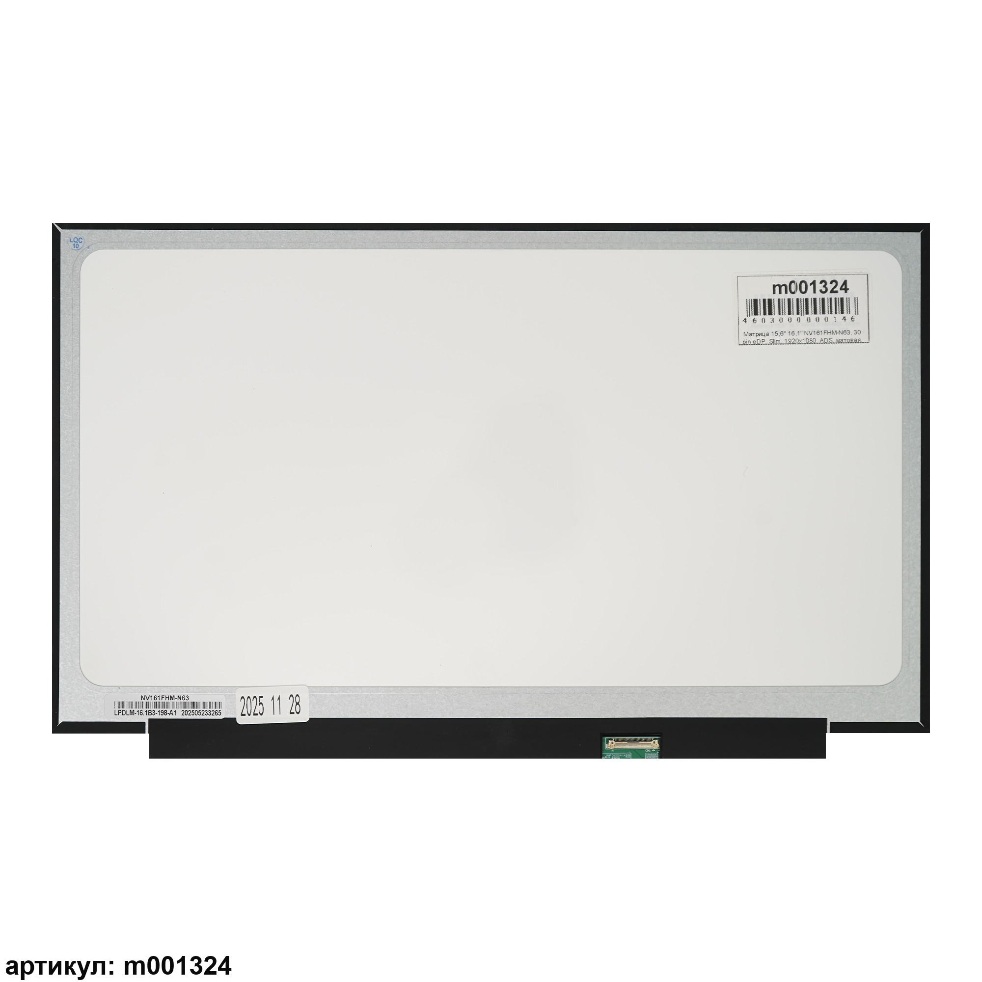 Матрица тонкая (slim), без креплений.Разъем расположен снизу справа на внешней плате.Совместимые модели: NV161FHM-N41 V3.0, NV161FHM-N61, NV161FHM-N61 V3.0, NV161FHM-N62, NV161FHM-N62 HW:V3.0, NV161FHM-N63, NV161FHM-NH0, NV161FHM-NX1, NV161FHM-NX1 HW:V3.0, NV161FHM-NX2, NV161FHM-NX2 V3.0