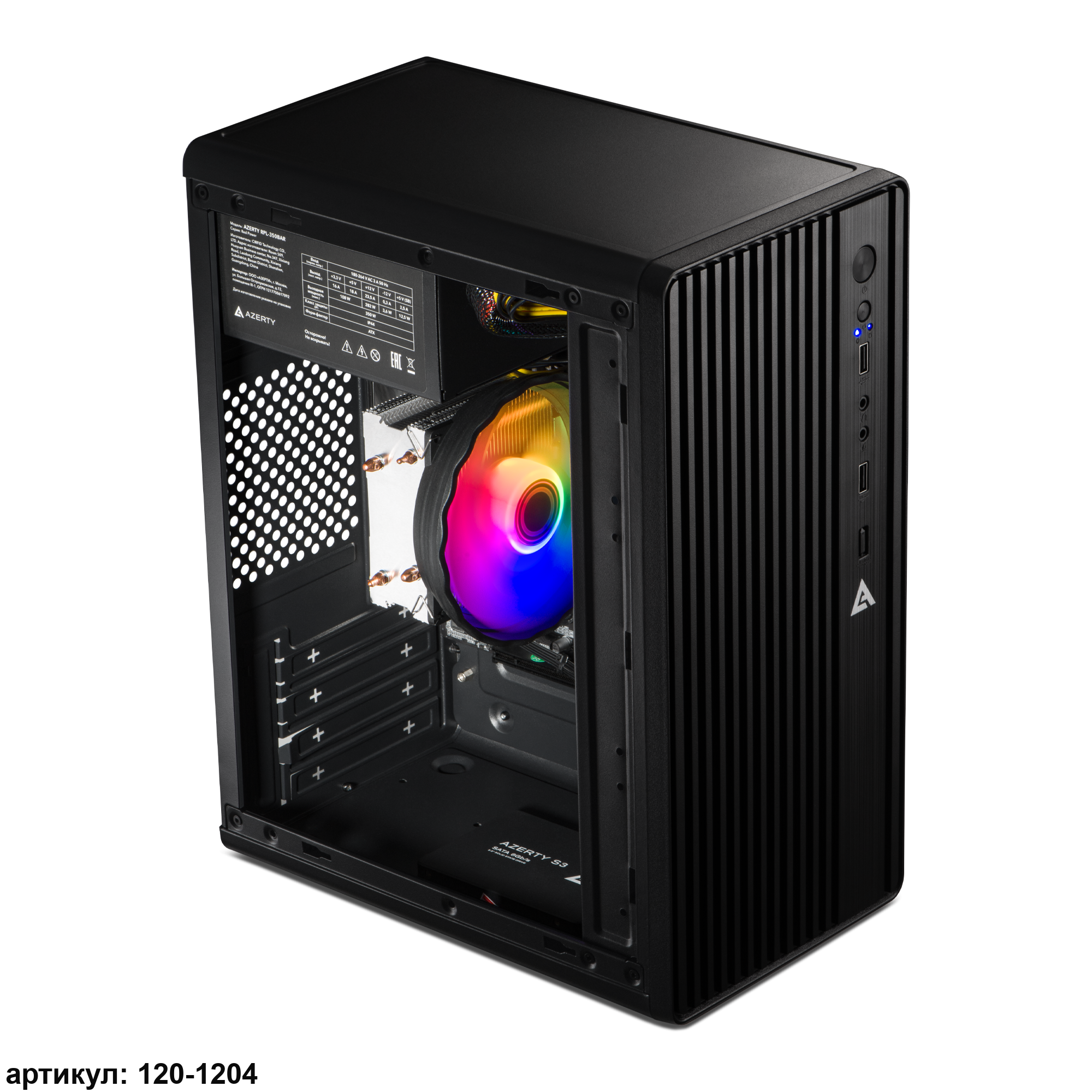 Персональный компьютер Azerty AZ-0001 сочетает в себе компактность с достаточной мощностью для офисной работы — от документов до интернет-серфинга. Габариты 280×165×350 мм и классический дизайн позволяют легко вписать его в любое рабочее пространство.