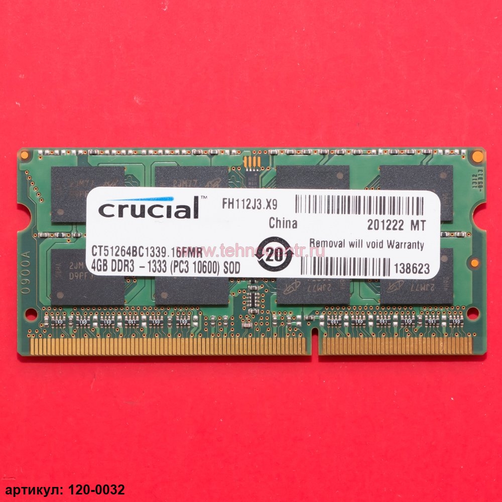 Оперативная память SODIMM 4Gb Crucial DDR3 1333