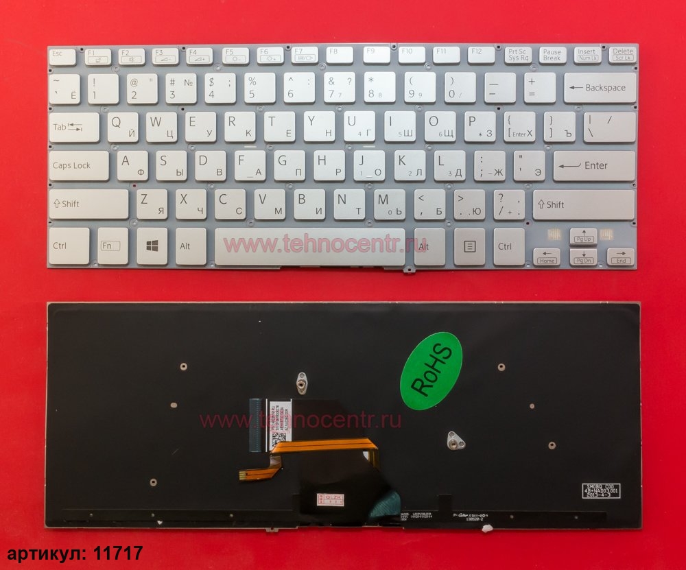 Клавиатура для ноутбука Sony Fit 14 серебристая без рамки, с подсветкой