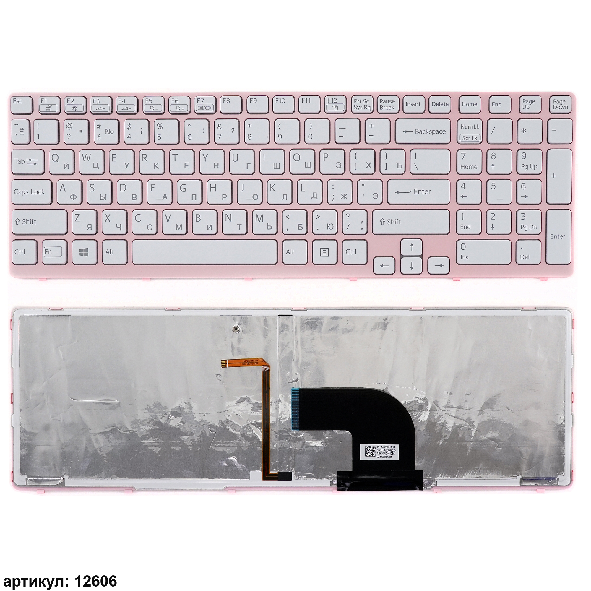 Клавиатура для ноутбука Sony Vaio E15 белая с розовой рамкой, с подсветкой