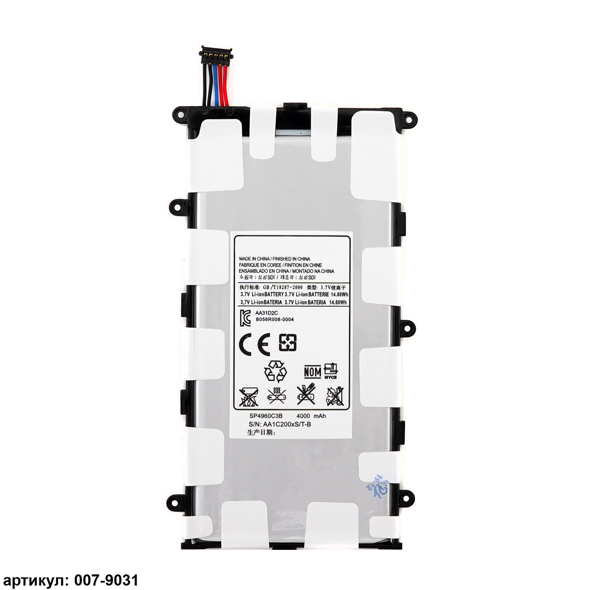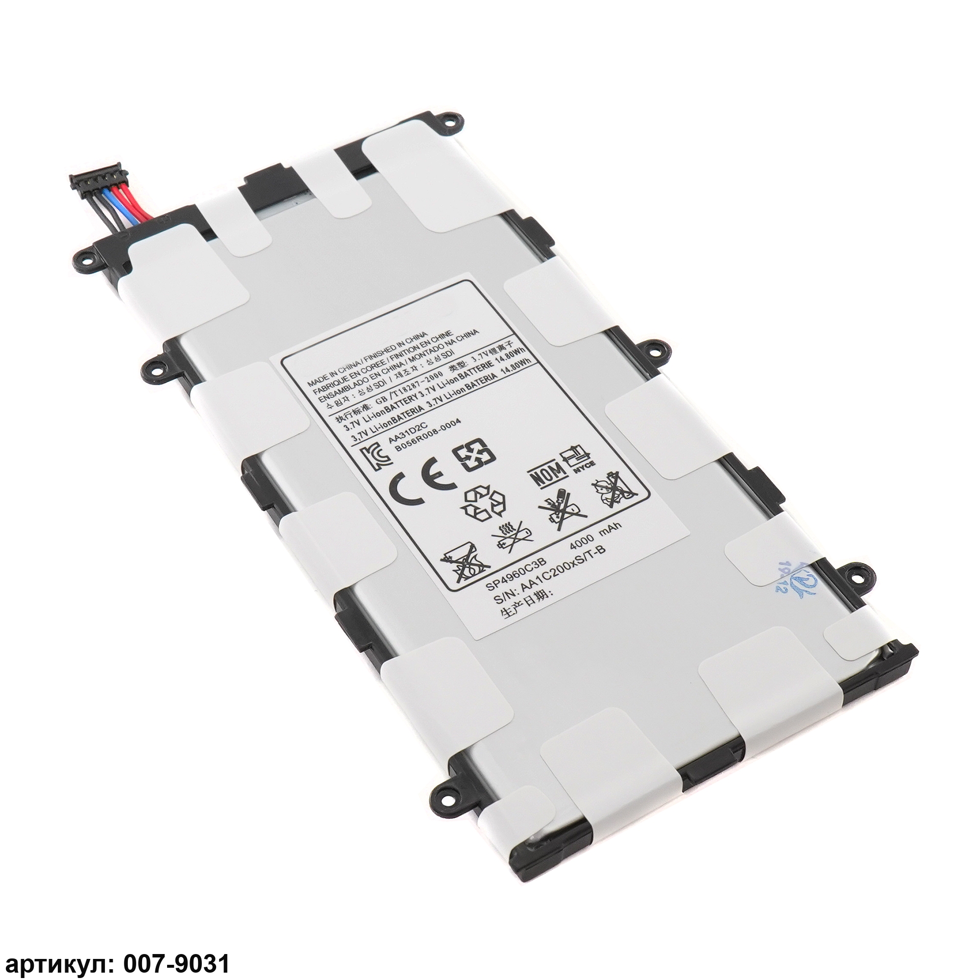 Подходит к планшетам: Samsung Galaxy Tab 2 7.0 GT-P3100, GT-P3110, GT-P3113, Galaxy Tab 7.0 Plus GT-P6200, GT-P6201, GT-P6210, SGH-T869Совместимые P/n: AA1BC20O/T-B, AA1C426BS/T-B, CS-SGP620SL, SP4960C3B