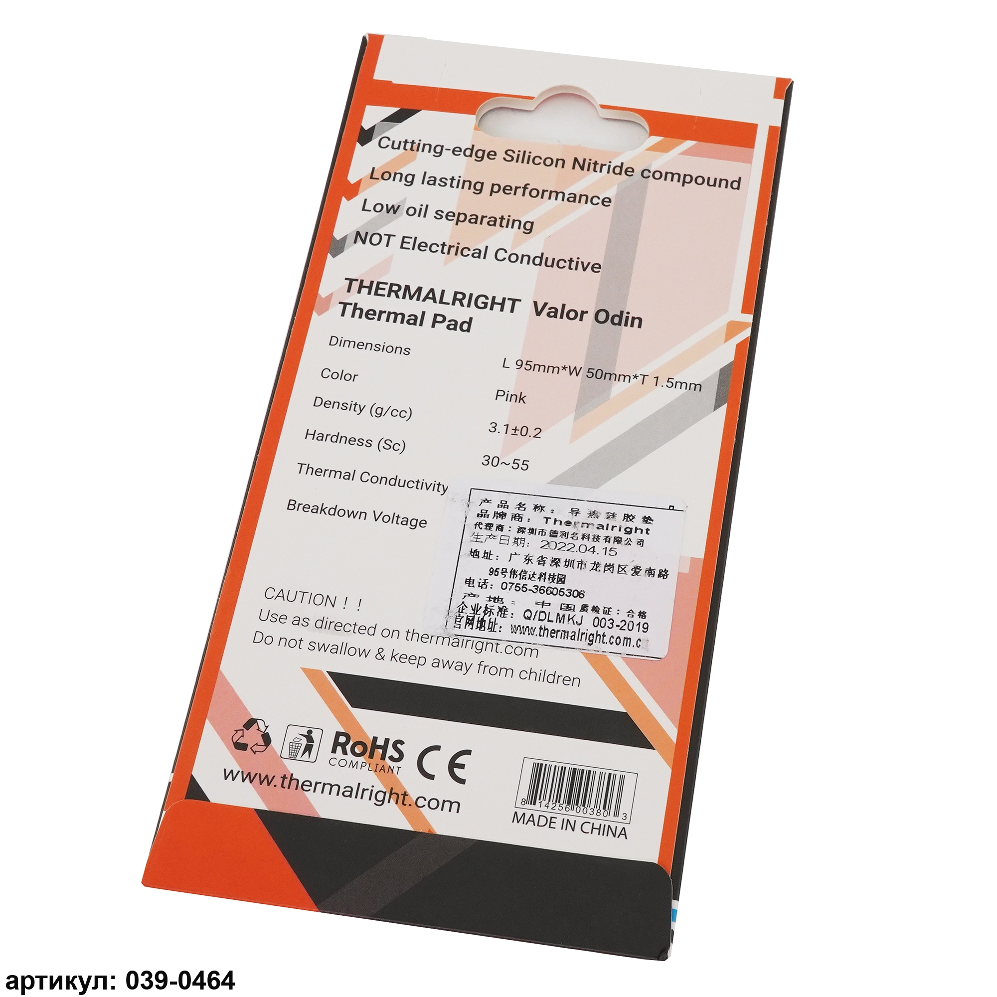 Термопрокладка 95x50x1.5 мм Thermalright Valor Odin 15 Вт/(м*К)