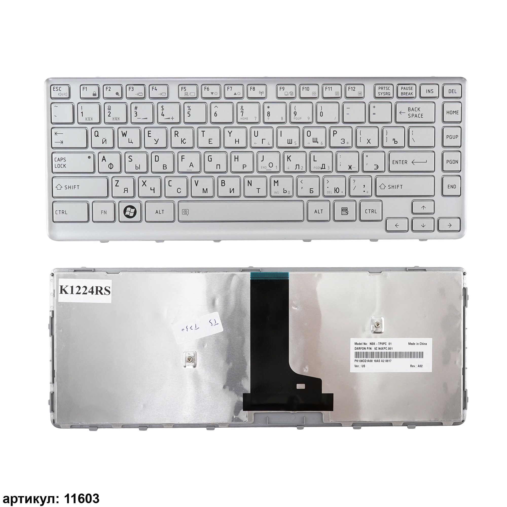 Клавиатура подходит к ноутбукам: Toshiba Satellite T230, T230D, T235, T235DСовместимые P/n: NSK-TPoPC, 9Z.N4XPC.001, PK130CQ1A00, 9Z.N4XPC.00R, NSK-TP0PC
